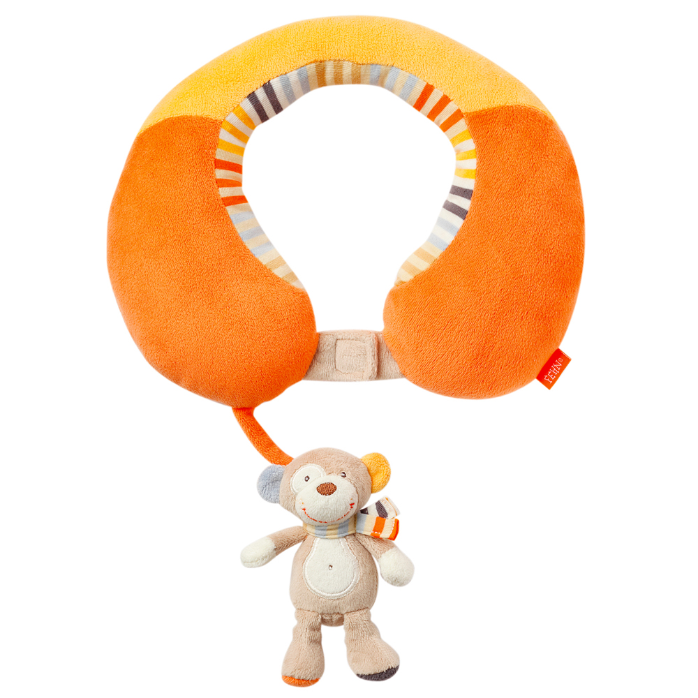 Мягкий подголовник для автокресла, коляски, кресла станет идеальным спутником малыша в путешествиях. Благодаря эргономичной форме, он хорошо прилегает к шее ребенка. Надежно поддерживает и разгружает шейный и плечевой отделы позвоночника. Защищает голову ребенка. Приятные на ощупь ткани красивого цвета обеспечивают комфорт и способствуют спокойному сну. А маленькая обезьянка с погремушкой внутри приглашает поиграть. Удобная застежка-липучка облегчает использование. Можно стирать.
