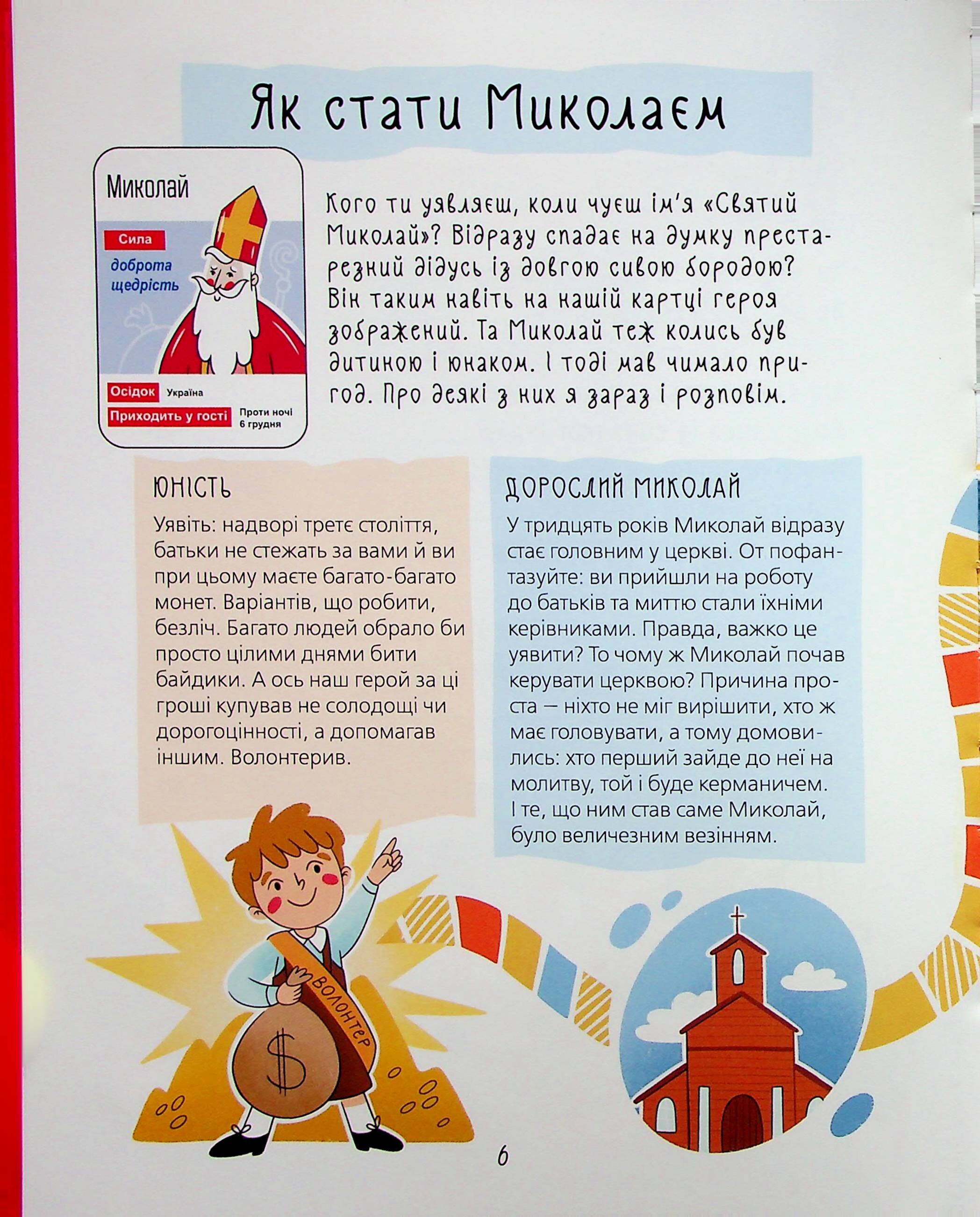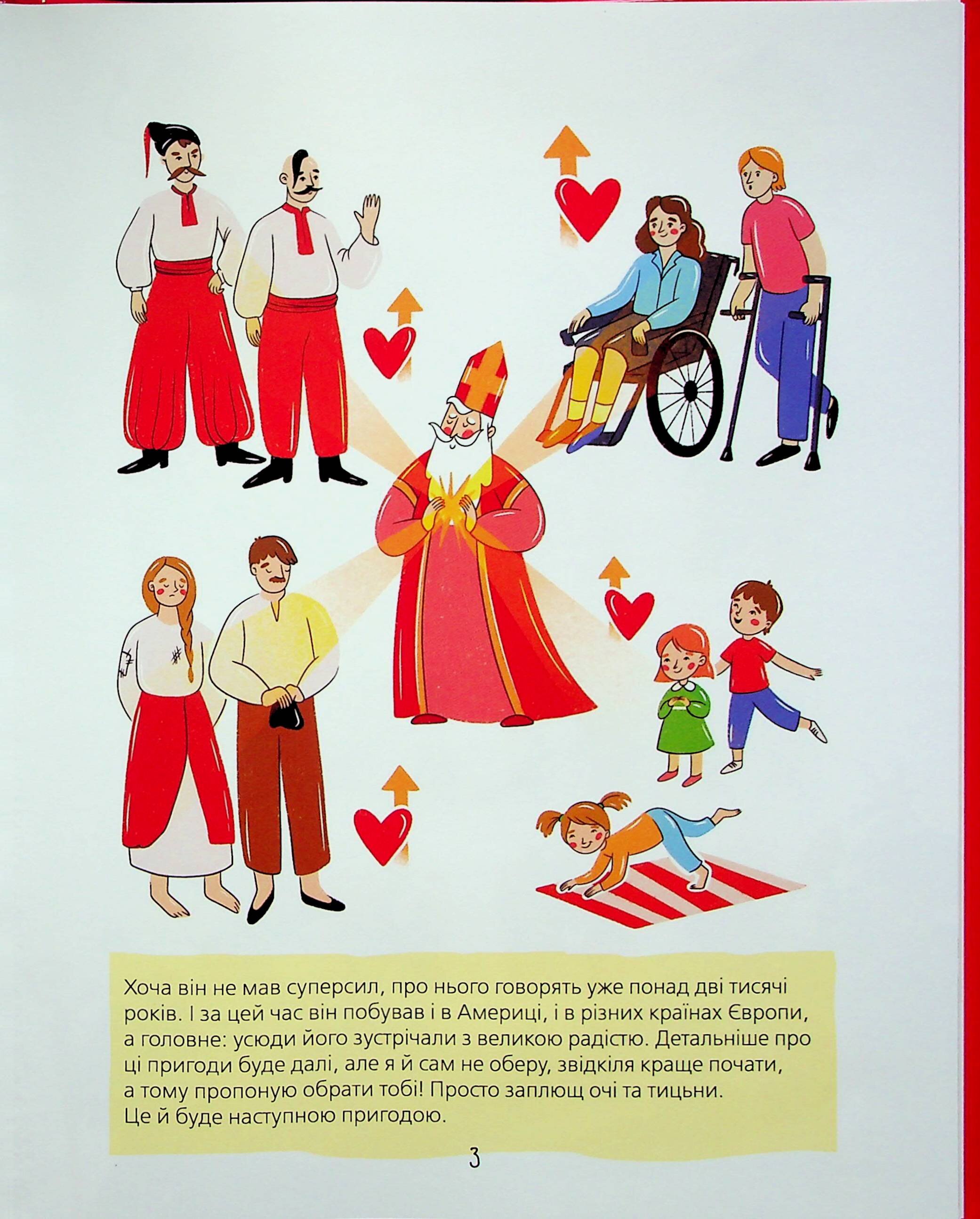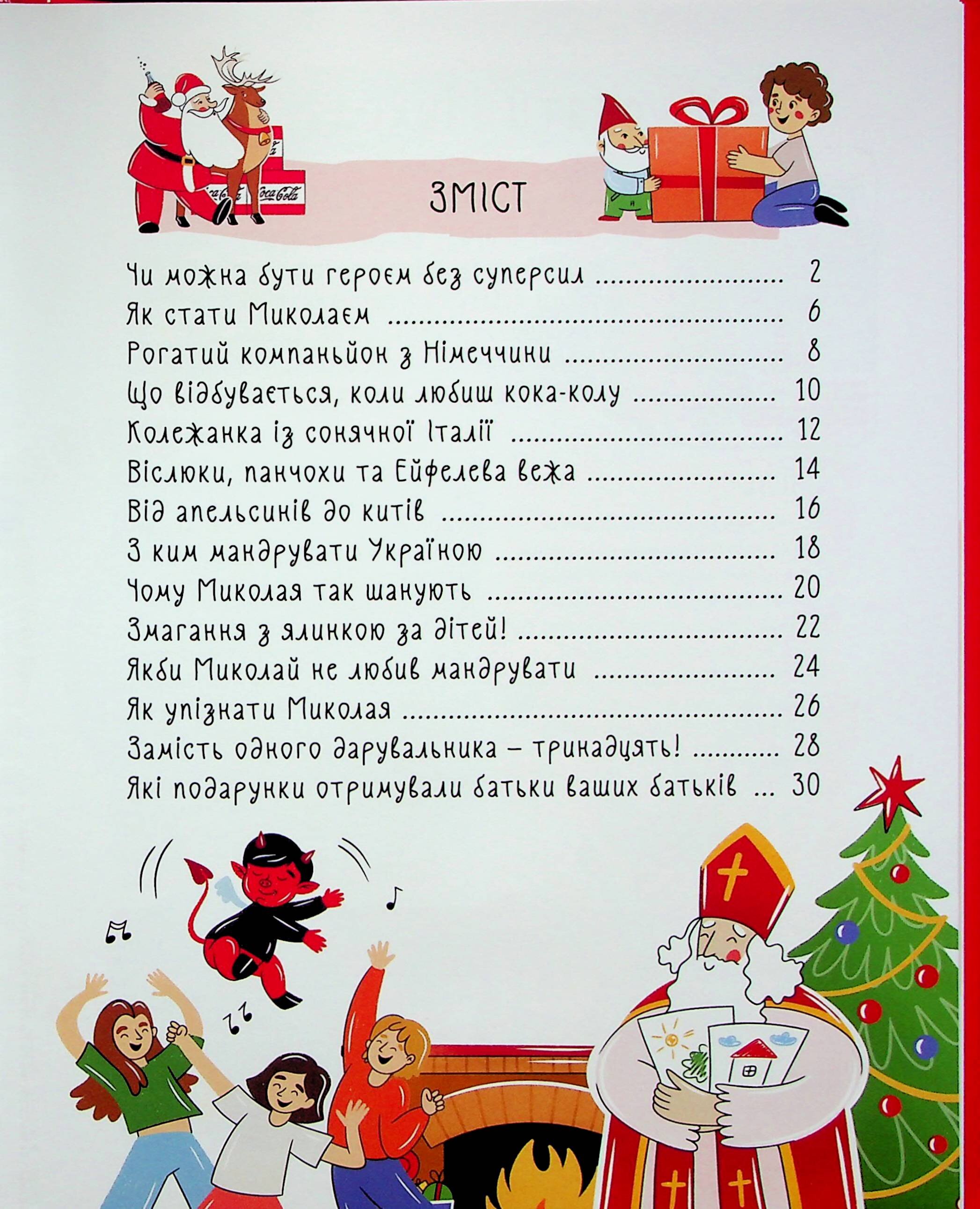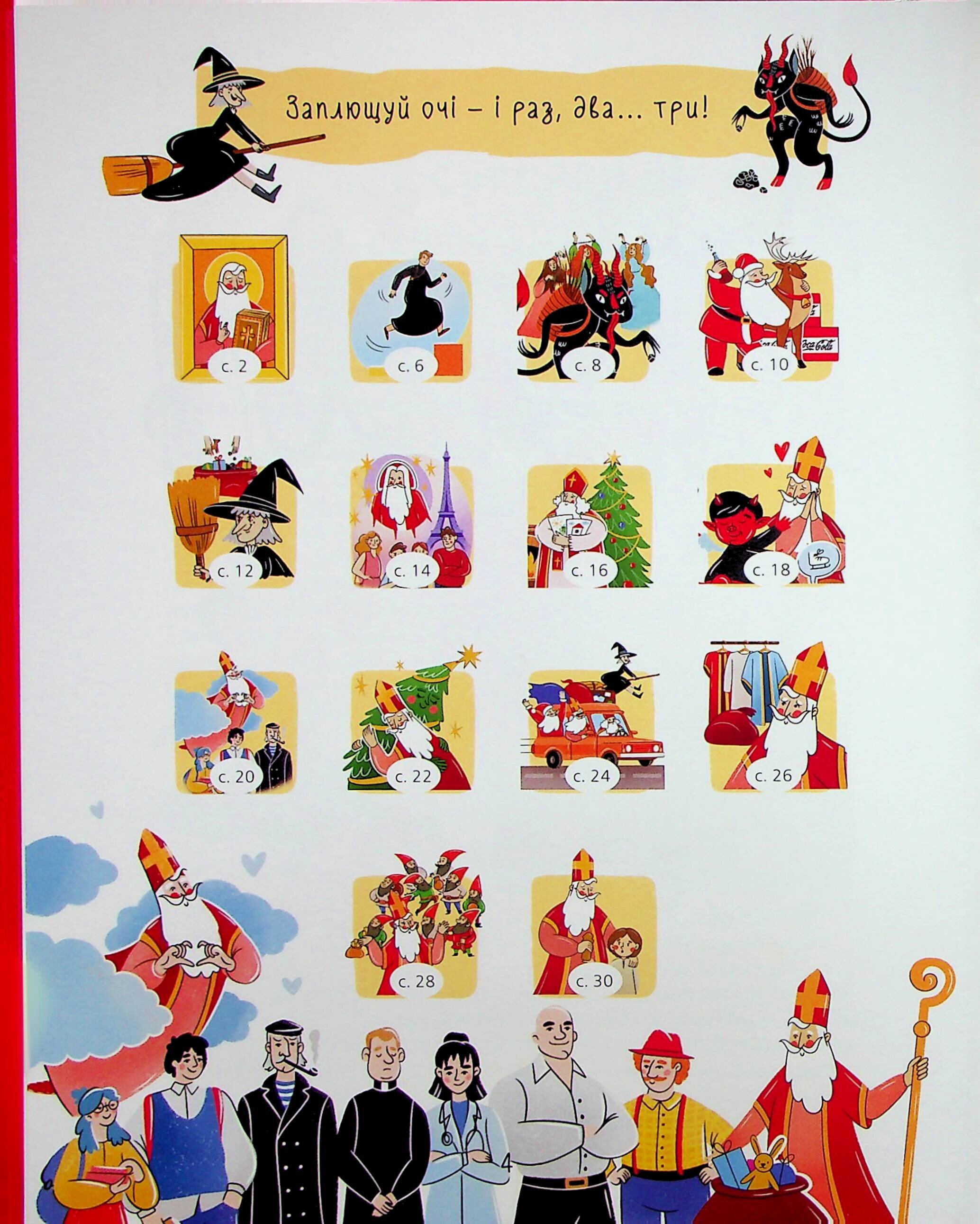 Что за звуки смеха и шуршание подарков? Это Святой Николай и его друзья спешат к детям со всего мира, чтобы поздравить с Рождеством и зимними праздниками! А что тебе известно о Николае? А о Санте? Знаешь ли ты, что в Исландии к детям приходит целая дружная семья из тринадцати йольских человечков? Интересно, получают ли дети тогда целых 13 разных подарков? Путешествуя по интересным историям, ты сможешь лучше познакомиться со Святым Николаем и традициями Украины, узнаешь ранее неизвестные факты о его друзьях и родственниках из разных уголков планеты, которых объединяет главное — любовь к детям! Все эти интересные факты ждут тебя в книге, а откуда лучше начать предлагаю выбрать тебе! Открывай страницу, находи магические рисунки, просто закрой глаза и тыцни! Это и будет следующим приключением. Готов? Закрывай глаза и раз, два… три!