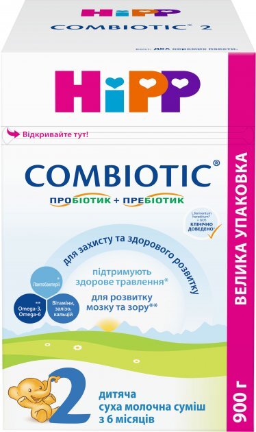 HiPP Combiotic 2 — для здорового роста и развития. На основе последних научных исследований грудного молока научные эксперты HiPP по детскому питанию разработали новое поколение молочных смесей HiPP Combiotic с пробиотиками и пребиотиками, которые наиболее соответствуют потребностям ребенка в полноценном питании.