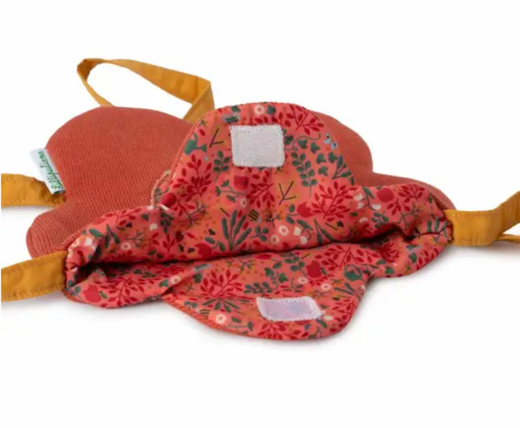 В маленьком мешочке спереди поместилась маленькая куколка, готовая радовать свою владелицу.