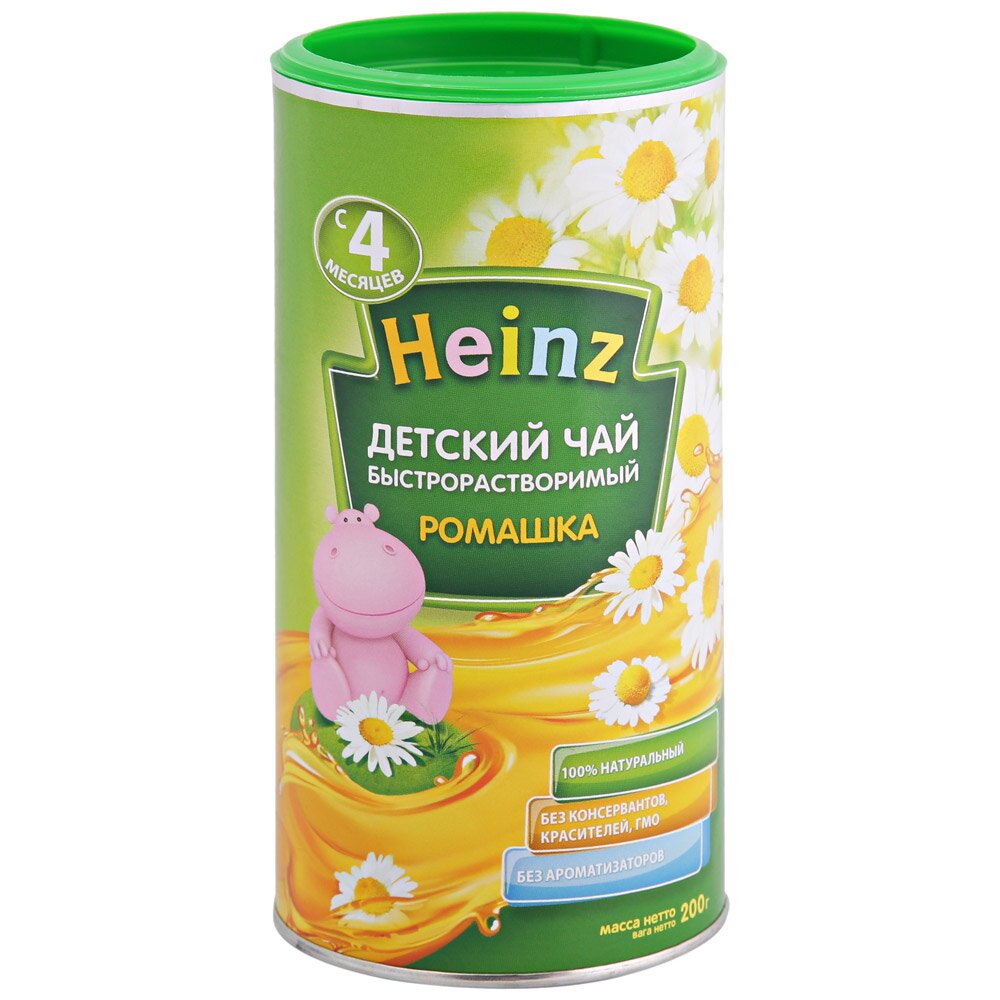 Детский чай Heinz (4046746000405) - гранулированный быстрорастворимый напиток с экстрактом ромашки для детей от 4 месяцев. Имеет полностью натуральный состав. Не содержит консервантов, красителей, ароматизаторов, ГМО.