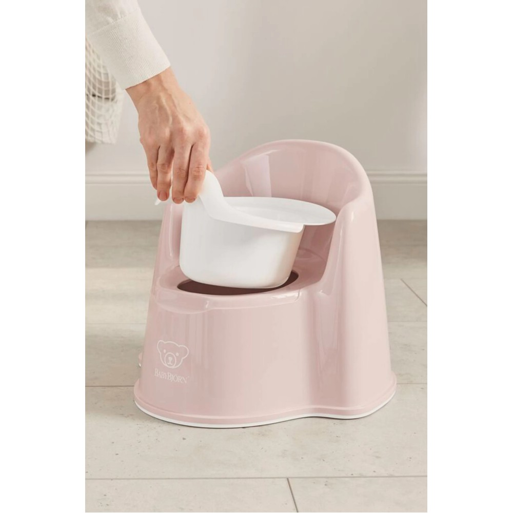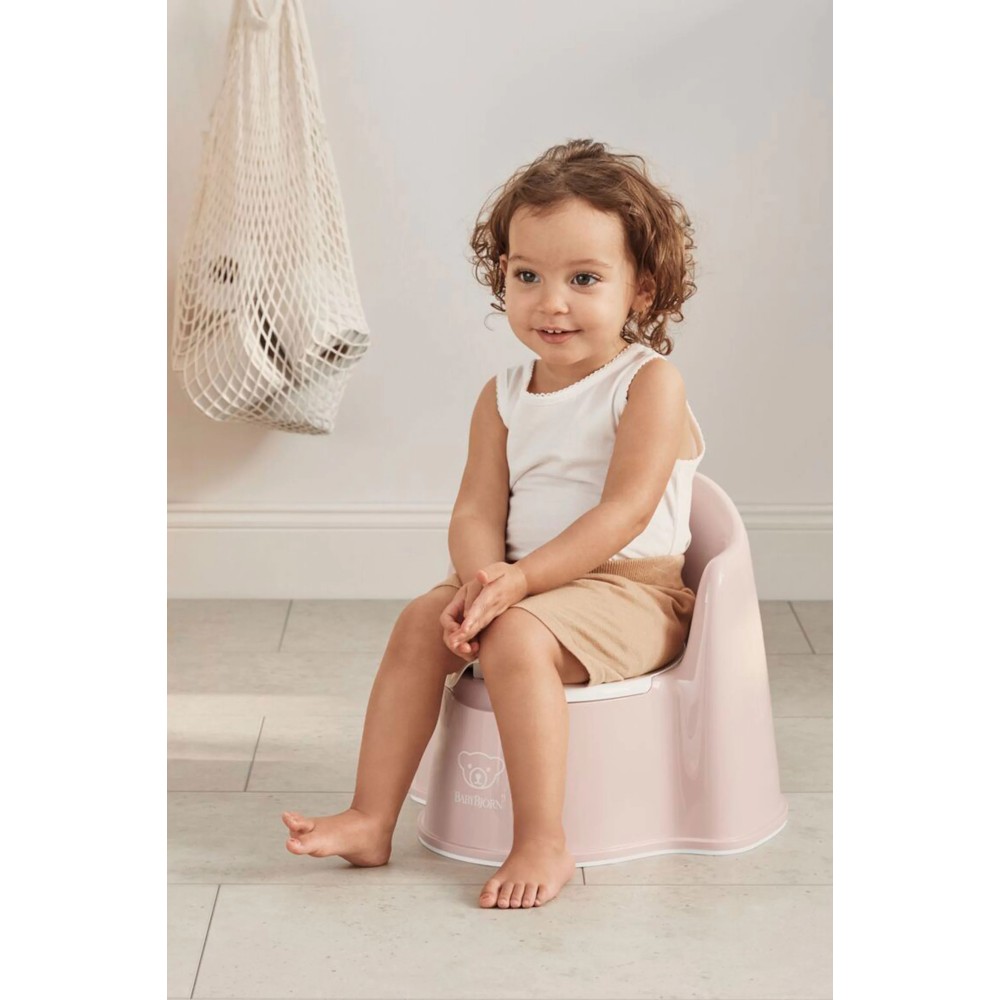 Горшок BabyBjorn обладает высокой удобной спинкой и подлокотниками, благодаря которым ребенку будет легче вставать. Эргономичная форма и гладкое покрытие обеспечивают полный комфорт использования, даже когда ребенку приходится проводить на нем длительное время. Широкая антискользящая резиновая лента удерживает горшок на месте.