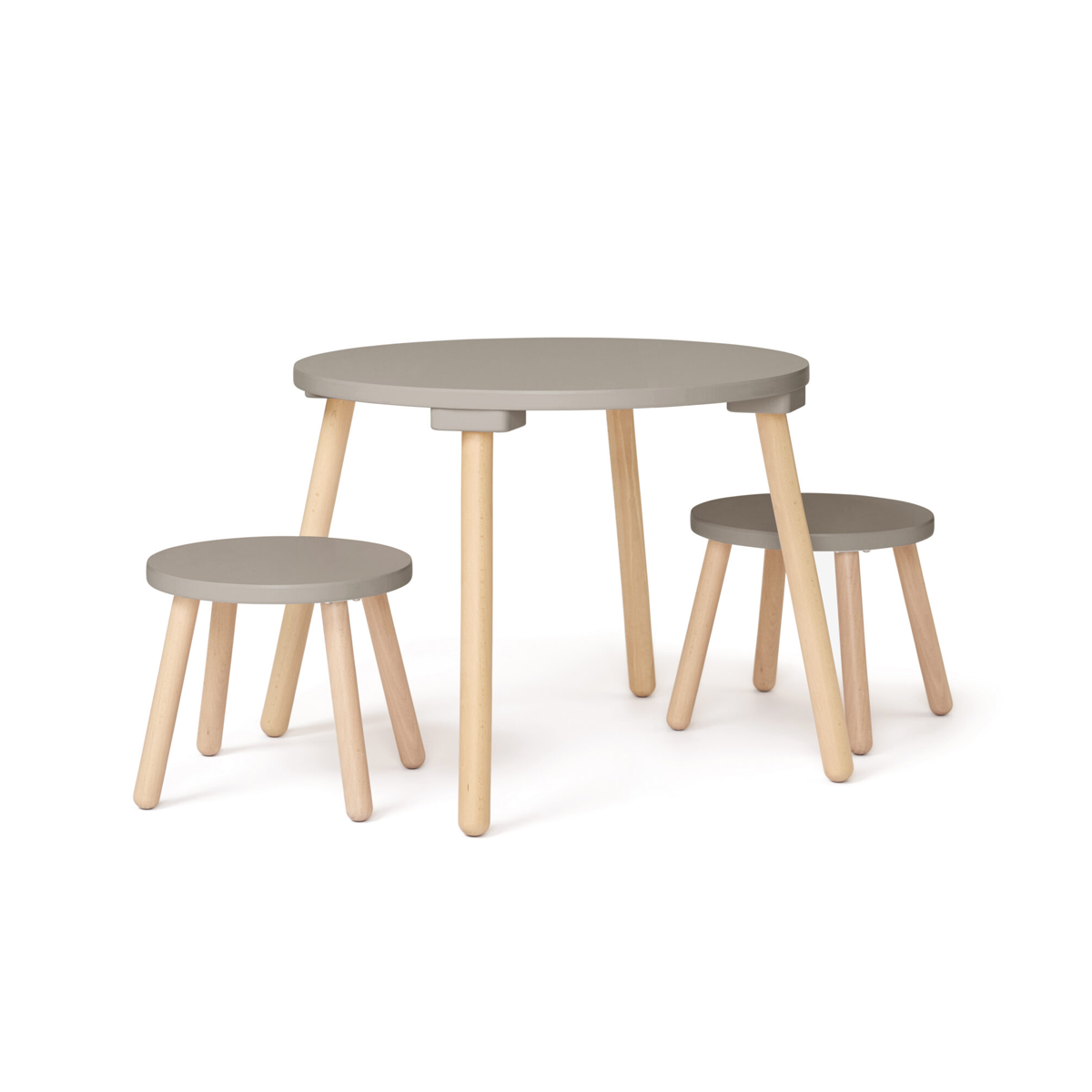 Детский набор мебели (стол + стул) Kids Concept обладает твёрдой, гладкой поверхностью, устойчивой к царапинам и лёгкой в уходе. Сиденье стула и столешница немного толще и имеют больший диаметр, чем у большинства аналогичных изделий. Благодаря наклонённым ножкам конструкция стола и стула устойчива и выдерживает активные детские игры. Материалы — бук (сертификат FSC) и MDF.