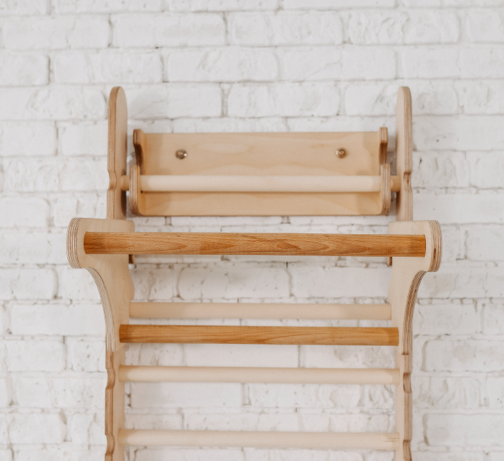 Поднимите возможности вашего треугольника на новый уровень с нашим инновационным дополнением к шведской стенке. Это дополнение легко превращает вашу треугольную лестницу в многофункциональную шведскую стенку с горизонтальной перекладиной. Речь идет не только о лазаньи – горизонтальная перекладина открывает вашему ребенку новые возможности для подтягиваний и висов.