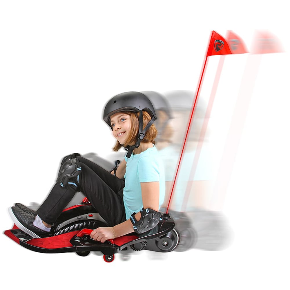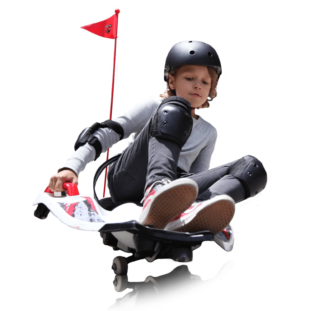 Педали акселератора и тормоза позволяют водителю легко контролировать скорость на дрифткаре Nighthawk. Детям понравится учиться маневрировать вокруг помех с помощью уникальной техники рулевого управления. Наклонитесь влево и вправо, чтобы сделать быстрые повороты. Боковые ручки позволяют вашему ребенку оставаться в безопасности, защищая тело и руки. С задним флажком безопасности вы можете легко следить за гонщиками.