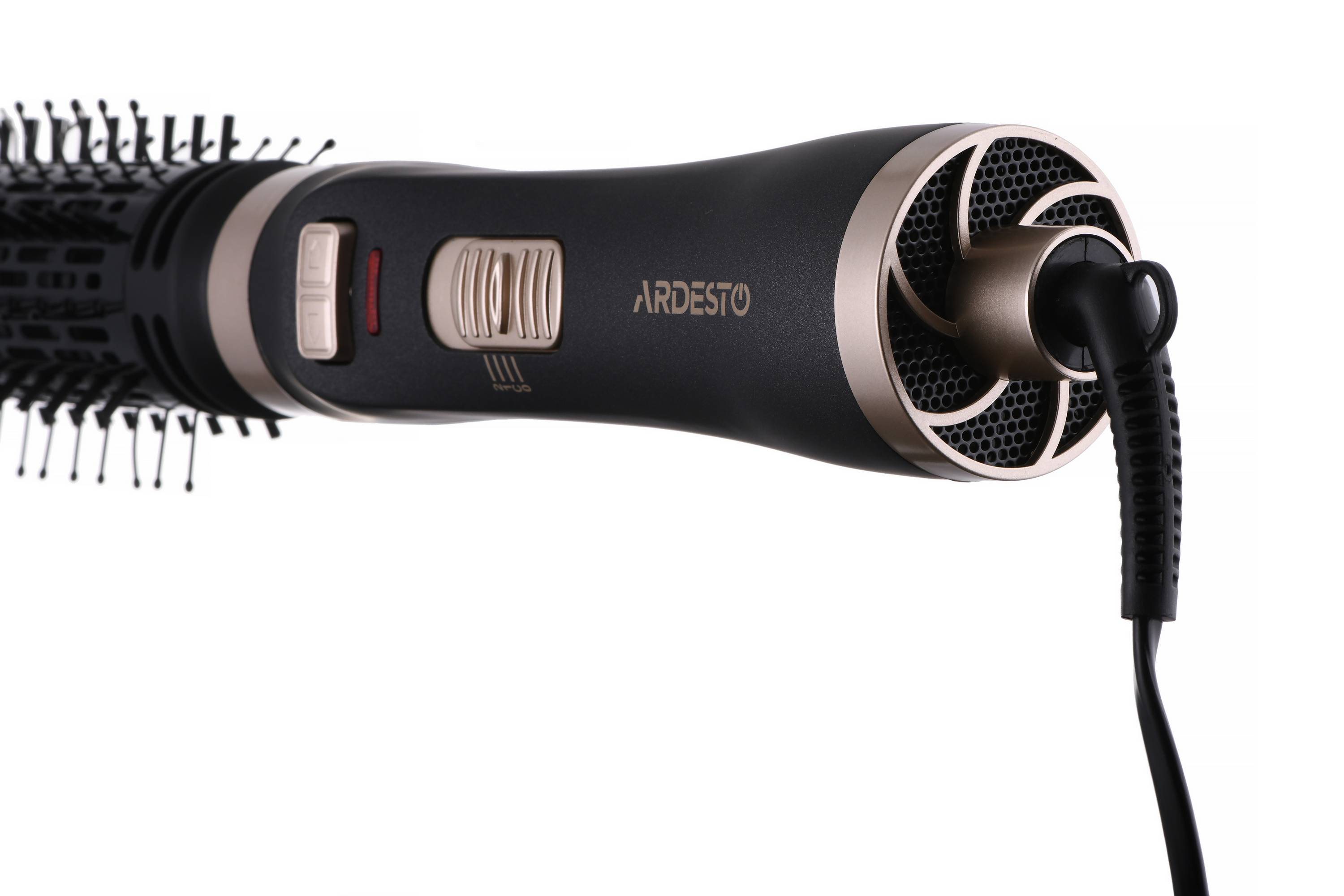 Фен-щетка ARDESTO – стайлер для укладки локонов, одновременно сушащий волосы, мощностью 1 000 Вт. Устройство имеет два температурных режима. В комплектации предусмотрены две съемные насадки с керамическим покрытием диаметром 40 и 50 мм, которые вращаются по и против часовой стрелки. Добавляет удобство при использовании шнура питания с вращением на 360°. Чтобы стать обладательницей красивой укладки, не обязательно посещать салон. С феном-щеткой ARDESTO HD-C100 можно с легкостью делать прическу самостоятельно.