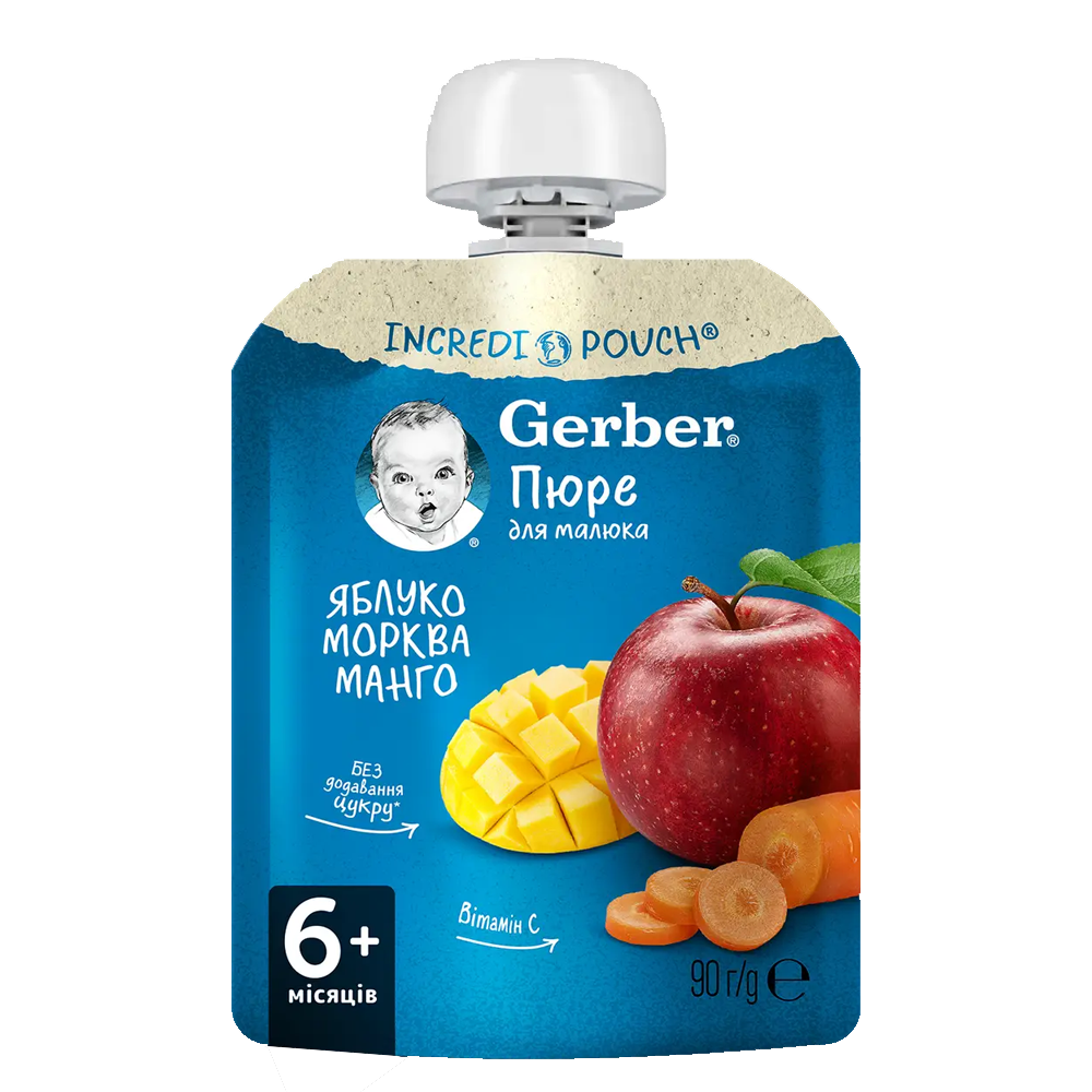 Фруктовое пюре Gerber в удобной мягкой упаковке – это 100% натуральных фруктов + витамин С! Мягкую упаковку "пауч" легко брать на прогулку, в путешествие или в гости. К тому же она способствует развитию навыков самостоятельности у малыша.