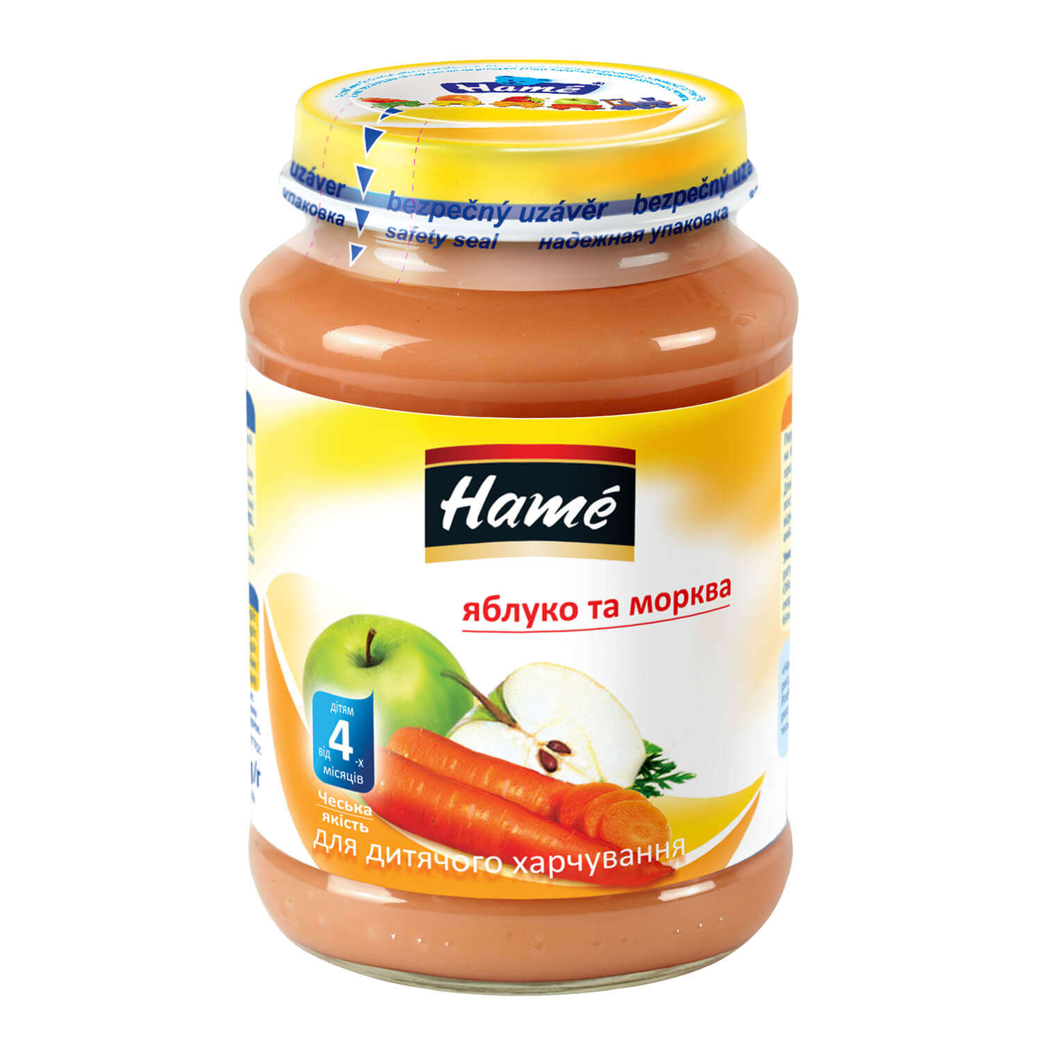 Фруктовое пюре Hame Яблоко и морковь – отличный источник витаминов и минералов для вашего ребенка. Для пюре используется сырье только высочайшего качества, что выращено на экологически чистых плантациях под строжайшим контролем.