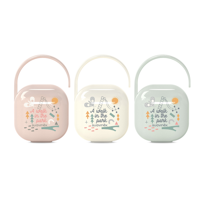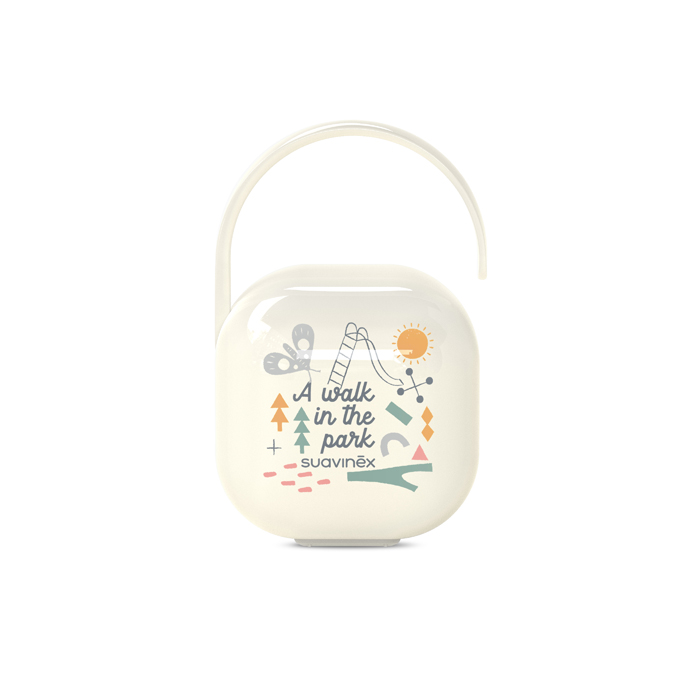 Футляр для пустышки Suavinex A walk in the park от испанского бренда создан для младенцев от рождения. Он легкий и безопасный. Изготовлен из крепкого пластика без содержания токсичных веществ. Оснащен крючком для навешивания на детской коляске, стульчике для кормления, колыбели и т.д. Имеет яркий дизайн. Помогает поддерживать пустышку в чистоте. Удобный контейнер для хранения.