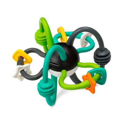 Развивающая многофункциональная игрушка - это погремушка с подвижными элементами и одновременно массажер - прорезыватель для десен малышей.
