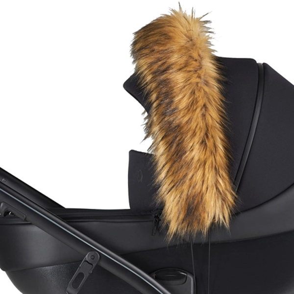 Аксессуар можно одеть на капюшон любой коляски. Мех выполнен на подкладке, имеется резинка для фиксации на капюшоне и регуляторы длины.
