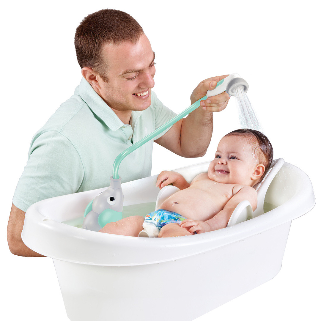 Игрушка для ванны Yookidoo Детский душ слоник заинтересует ребенка и обеспечит веселое и полное приятных эмоций купание. Модель оснащена душем, который работает на батарейках. Нажмите на кнопку для начала игры. Устройство берет воду из ванны и создает струю воды. Очень удобно держать одной рукой душ, а другой — ребенка.