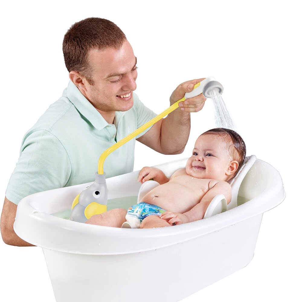 Игрушка для ванны Yookidoo Детский душ слоник заинтересует ребенка и обеспечит веселое и полное приятных эмоций купание. Модель оснащена желтым душем, который работает на батарейках. Нажмите на кнопку для начала игры. Устройство берет воду из ванны и создает струю воды. Очень удобно держать одной рукой душ, а другой — ребенка.
