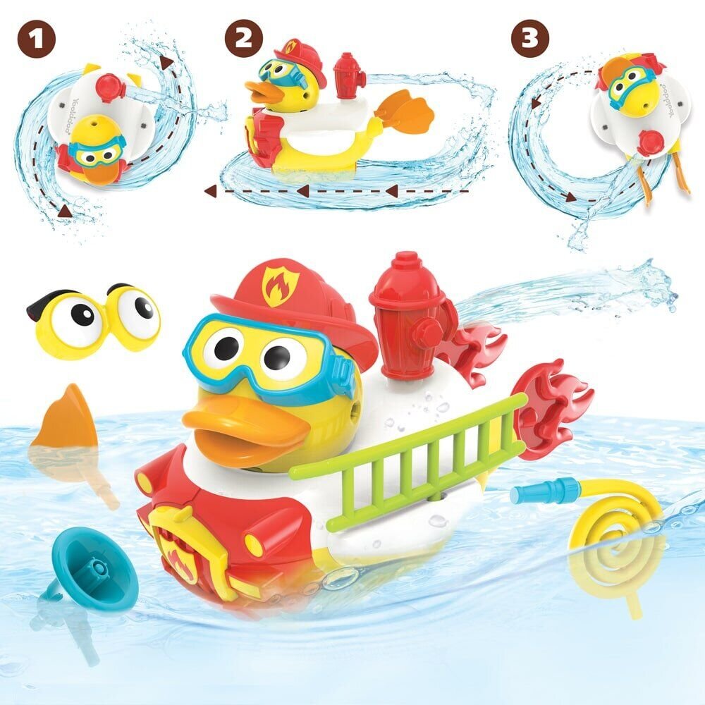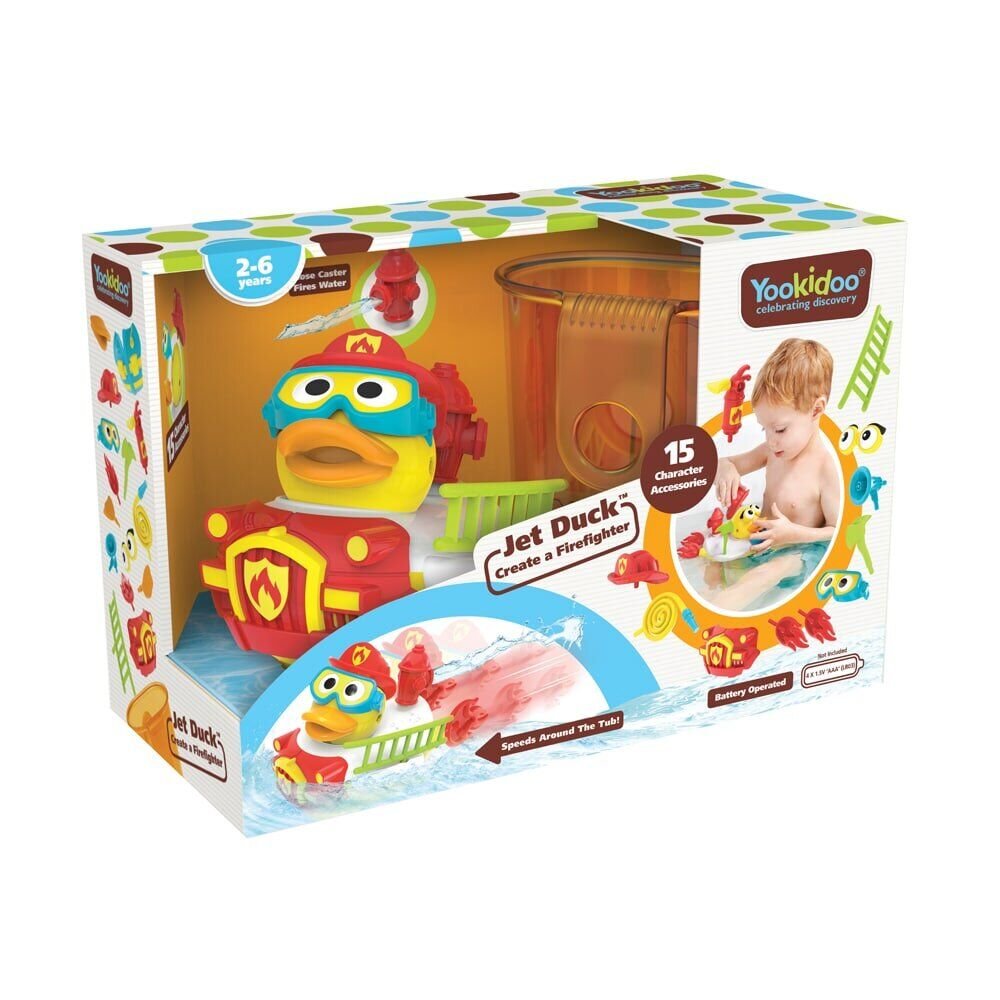 Игрушка для купания Пожарный Джек - это классная реактивная утка, которая работает от батареек, умеет гонять по ванне и веселить вашего ребенка! В комплекте идет 15 тематических аксессуаров, позволяющих создавать образы утки для увлекательной сюжетной игры. Водяная пушка Джека легко вращается на 360 градусов и обрызгивает противников, будет весело!