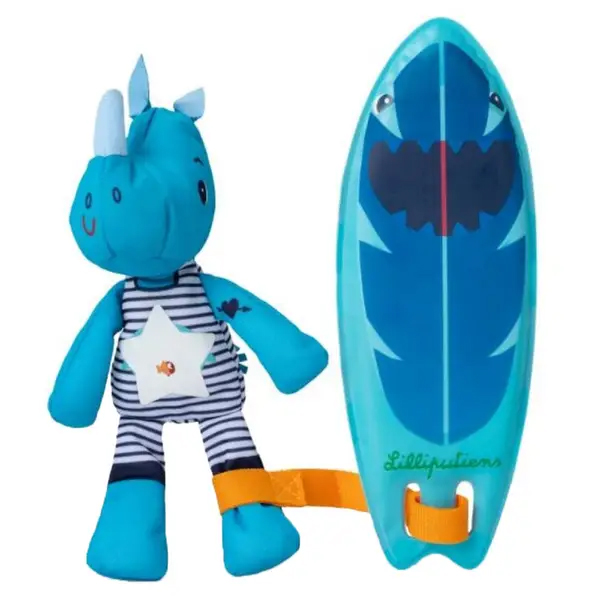 Мариус скользит по волнам на своей волшебной доске для серфинга. Когда он прыгает в воду, на его гидрокостюме и доске появляются картинки. Остерегайтесь волн, отправляйтесь на серфинг! Игрушка для ванной Lilliputiens Серфер Носорог Мариус (83541) с которой вашему ребенку точно понравится катать игрушку по волнам в ванне.