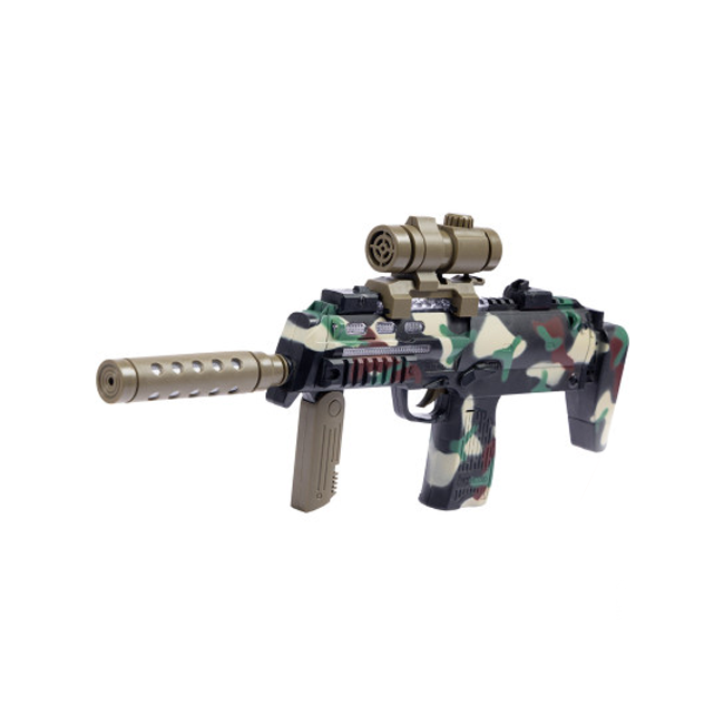 Светозвуковые автоматы работают на батарейках типа АА, которые не входят в комплект. При нажатии на спусковой крючок автомат имеет звуковое сопровождение, синюю яркую подсветку и имитацию отдачи.