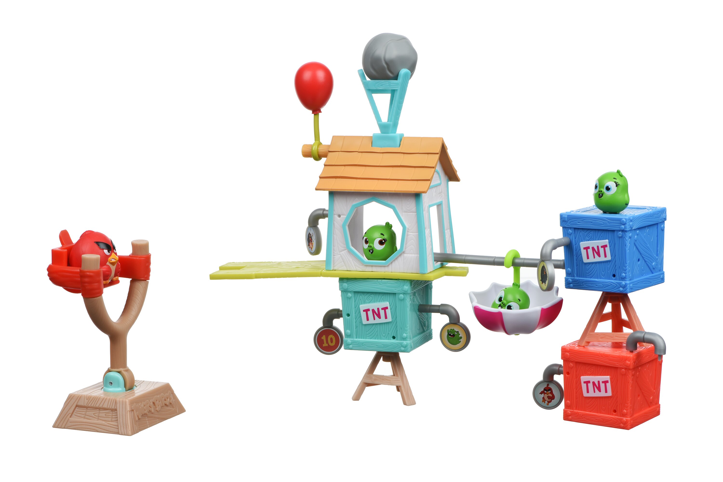 Большой игровой набор, который позволит построить настоящий свиной город. Все, как в фильме и все, как в настоящей игре. Набор состоит из 25 небольших предметов: главного героя - красной птички Ред и трех его зеленых противников - зеленых свинок. Все остальные детали, входящие в набор, позволят построить игровое городок, как в игре, и играть, выбивая надоедливых свинок красной птичкой с пускового механизма.