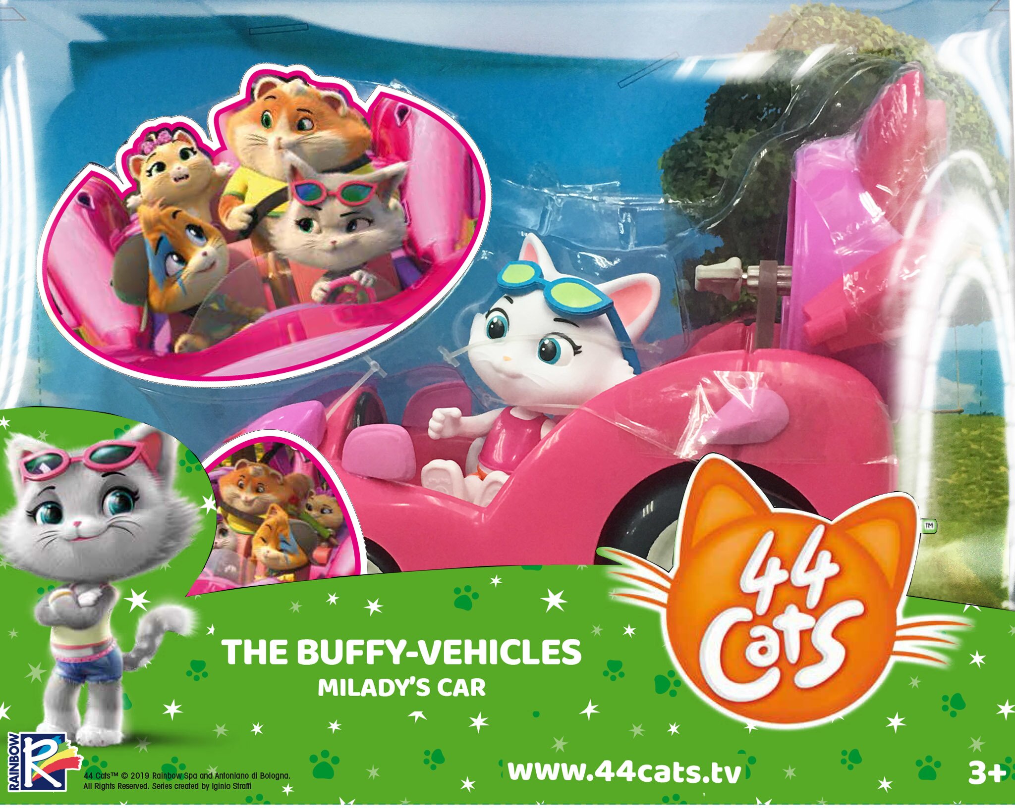 Игровая фигурка 44 Cats фигурка Миледи с транспортным средством. История начинается… 44 Кошки – это итальянский мультсериал, показывающий ежедневные приключения котеек Спалах, Миледи, Пилу и Фрикаделя, также известных как The Buffycats - название их группы. И многие другие коты и кошечки, которые повстречаются главным героям в их увлекательных приключениях Buffycats живут в современном городе, в гараже бабушки Пины. Они превращают гараж в свой клуб — место, где все соседские кошки собираются вместе, чтобы повеселиться, расслабиться и, главное... помочь друг другу!