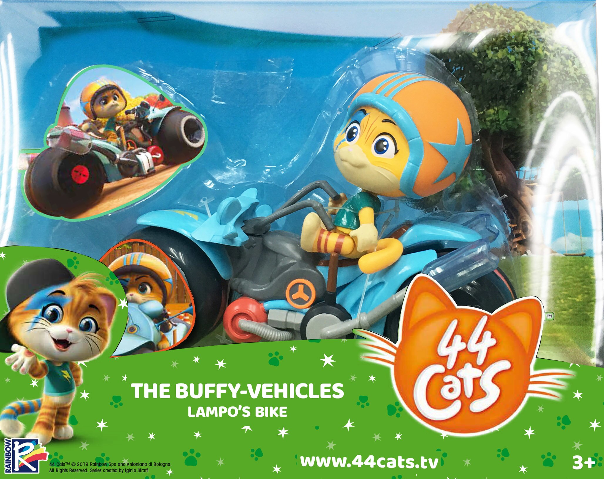 Игровая фигурка 44 Cats фигурка Спалах с транспортным средством. История начинается… 44 Кошки – это итальянский мультсериал, показывающий ежедневные приключения котеек Спалах, Миледи, Пилу и Фрикаделя, также известных как The Buffycats- название их группы. И многие другие коты и кошечки, которые повстречаются главным героям в их увлекательных приключениях Buffycats живут в современном городе, в гараже бабушки Пины. Они превращают гараж в свой клуб — место, где все соседские кошки собираются вместе, чтобы повеселиться, расслабиться и, главное... помочь друг другу!