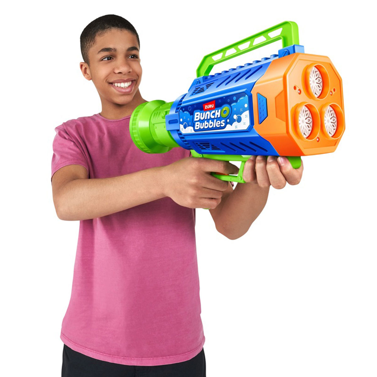 Разблокируйте новый уровень пузырьковой феерии с мегабластером Bunch O Bubbles! Обновленный дизайн игрушки позволяет создать еще больше мыльных пузырей, больше веселья и больше приятных воспоминаний. А также уже не нужно погружать бластер в раствор. Всего одним нажатием на курок вы сможете создать целое облако пузырей, а LED-подсветка добавит радужных красок!