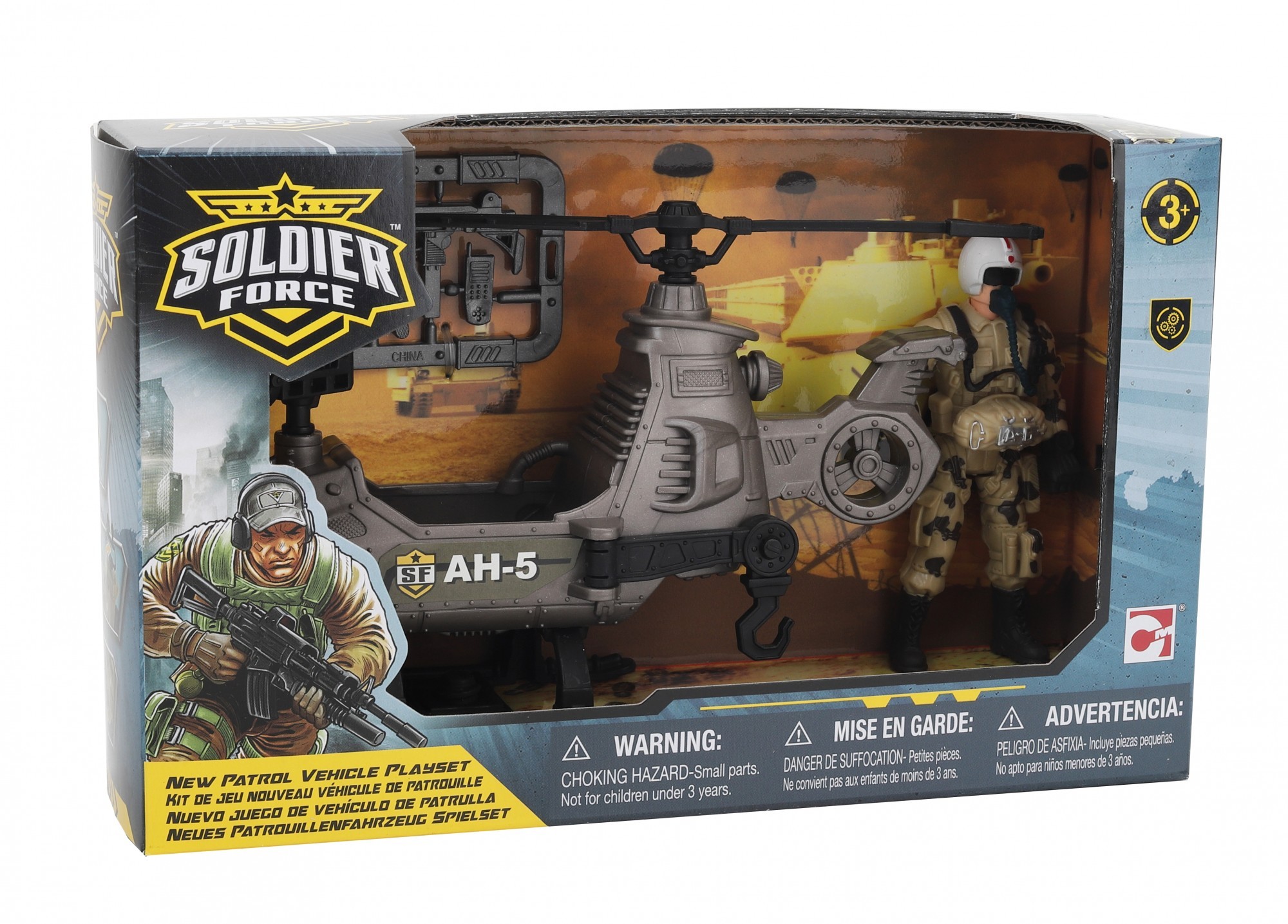Игровой набор SOLDIER FORCE HELICOPTER станет хорошим сюрпризом для маленького воина. Игра, в которой персонажи – игрушечные солдаты, наполнит яркими эмоциями и вовлечет в процесс, где нужно разрабатывать свою победную стратегию.