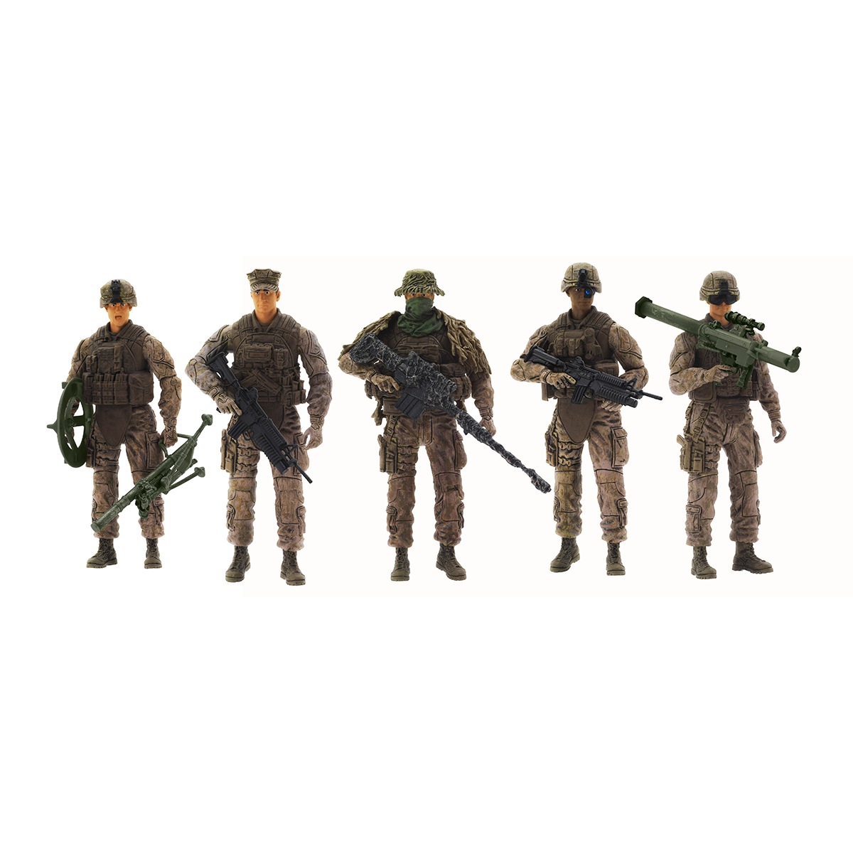 Знакомьтесь с военным отрядом РАЗВЕДКА, состоящего из 5 бойцов с аксессуарами, включая пулеметы и шлемы с приборами ночного видения: 4 фигурки пехотинцев и 1 эксклюзивная фигурка снайпера. В вашем подчинении: снайпер (кодовое имя: Страйкер) контролирует позиции врага с высоты больших башен командир отряда Сержант (кодовое имя: Ти Джей) удерживает ваше войско в строю радист (кодовое имя: Грунт) всегда держит связь минометчик M224-60 (кодовое имя: Танк) и артиллерист с плечевой пусковой установкой SMAW (кодовое имя: Пушка) создают взрывные атаки против врага. Все фигурки имеют отличную детализацию и натуральную артикуляцию, что делает их роскошным дополнением к любому игровому процессу или коллекции фигурок!