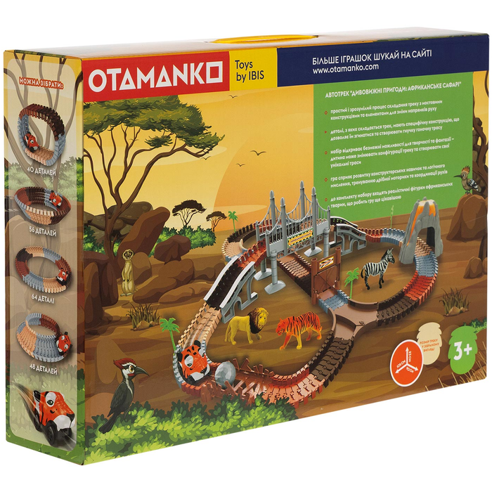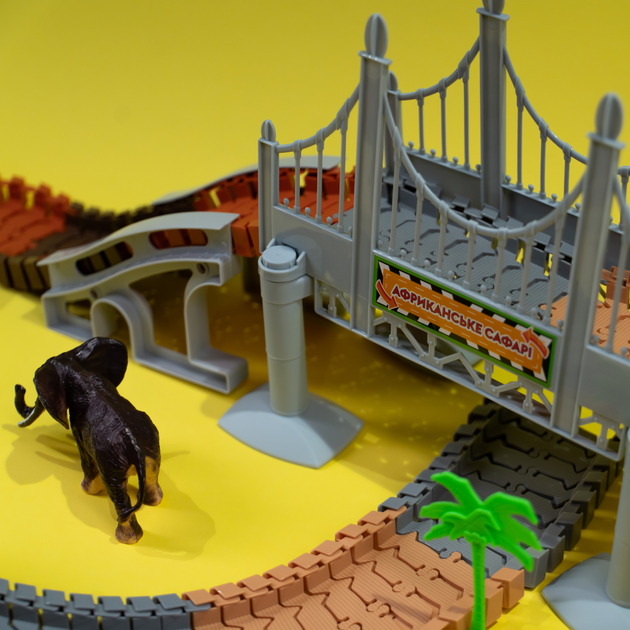 В наборе – пальмы, животные, знаки и тематический транспорт.