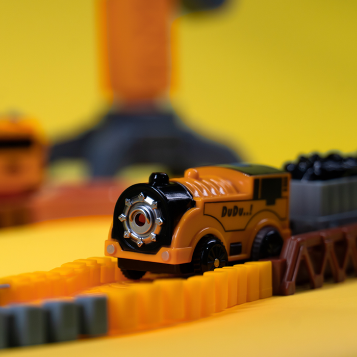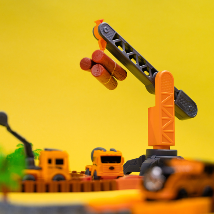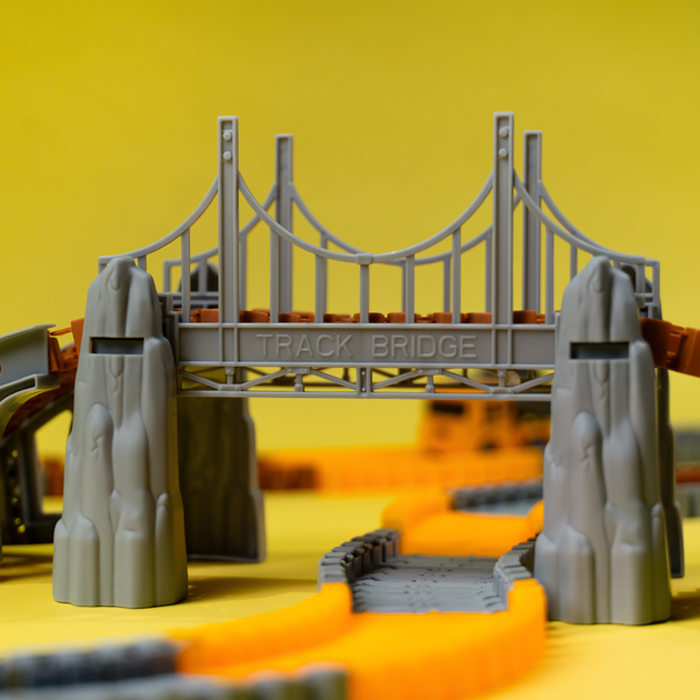 Интерактивный гибкий трек со спусками, подъемами и мостами превращается в настоящую площадку для техники и машин.