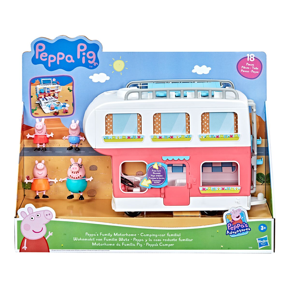 Встречайте героев популярного мультфильма 'Свинка Пеппа'! Отправляйтесь на отдых в удобном фургоне вместе с Пеппой и ее семьей. Теперь у Вас есть все для настоящего пикника, ура!