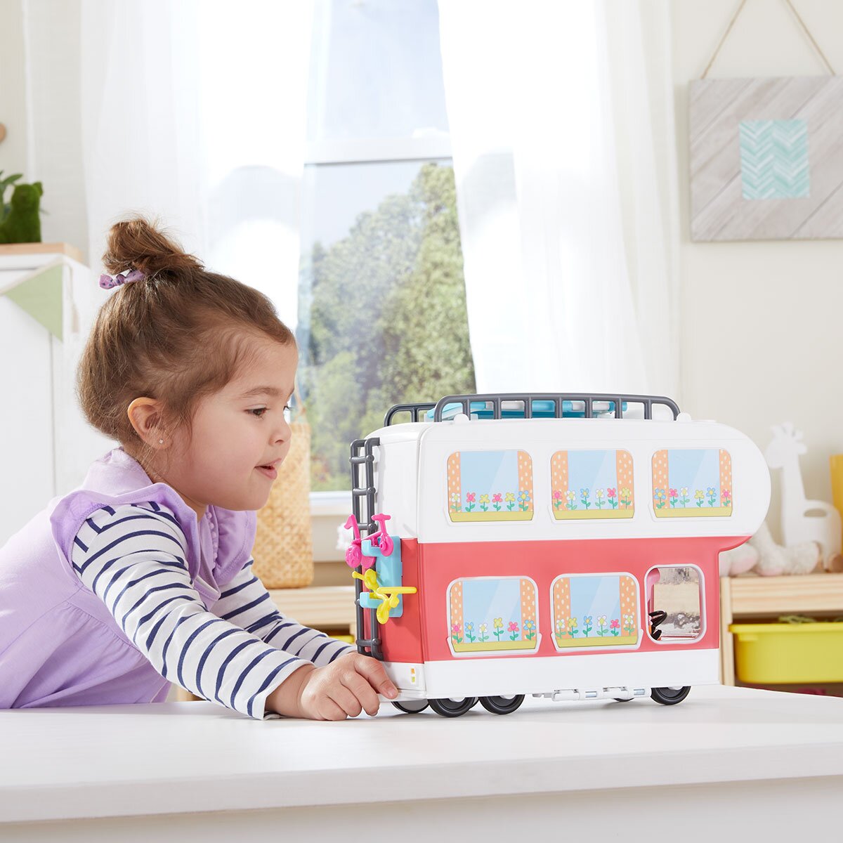 В наборе множество интерактивных аксессуаров-сюрпризов: стол превращается в бассейн, под раскладным тентом находится гамак для отдыха, ящички кухни выдвигаются. Двухэтажная кровать раскладывается, словно по волшебству!