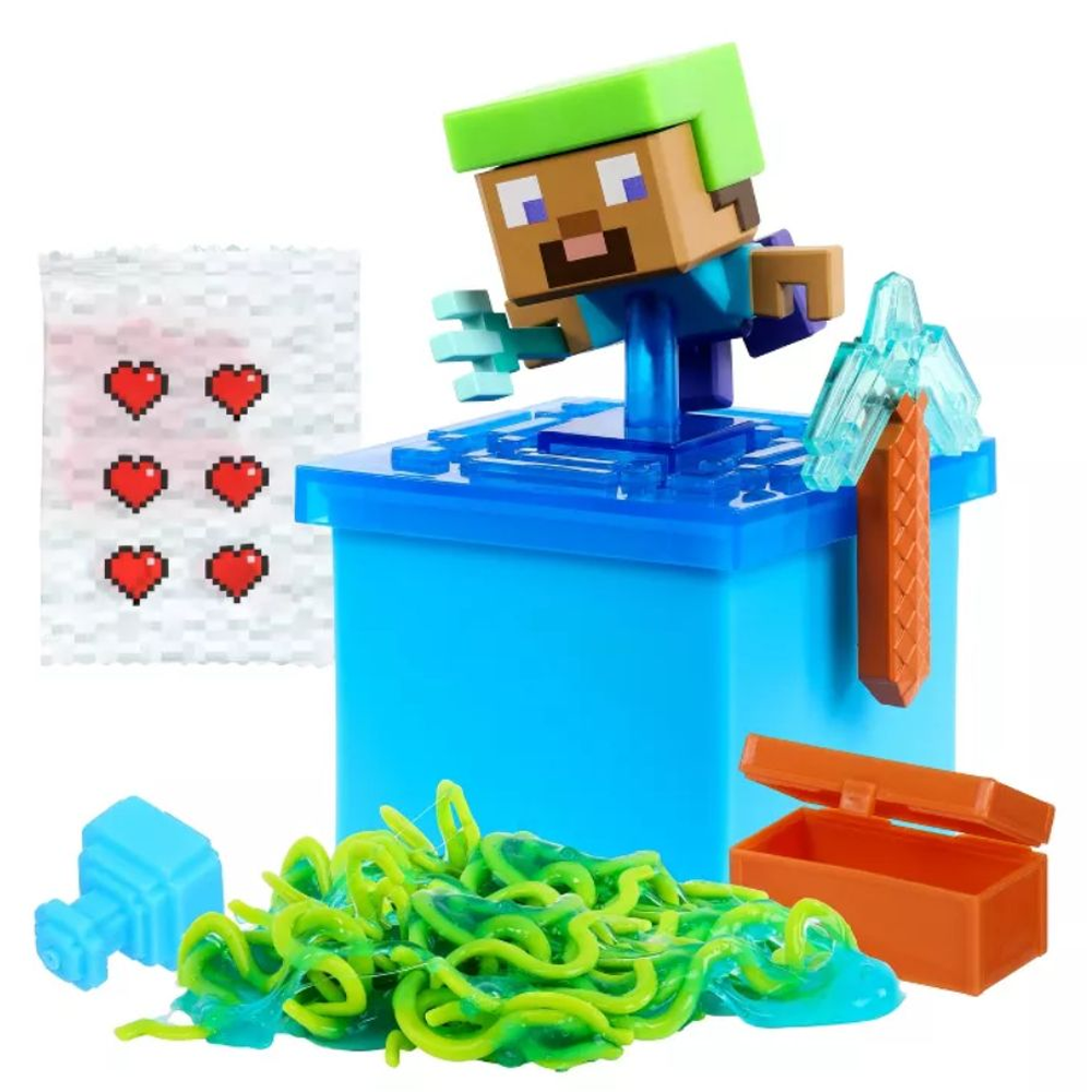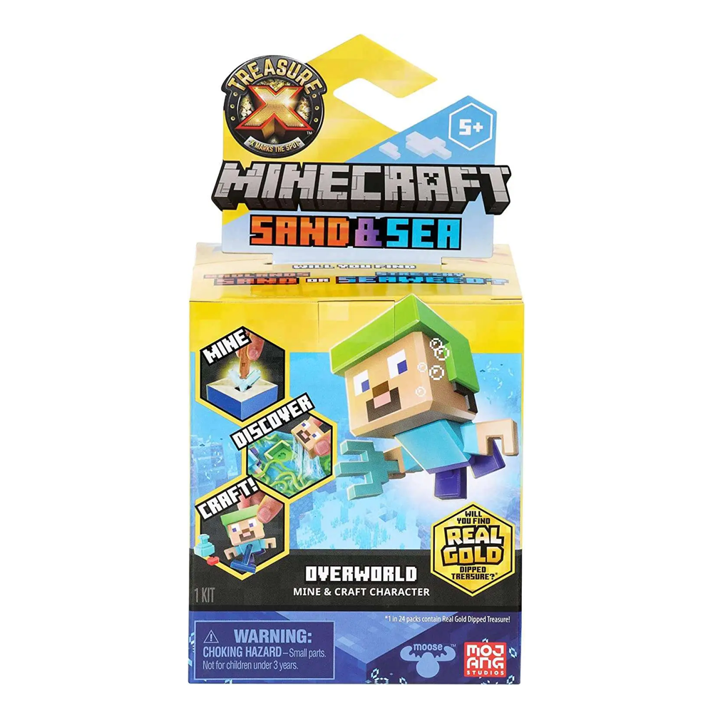 Войдите в мир Minecraft Sand & Sea и оживите приключение, где ваш ребенок будет добывать персонажей и НАСТОЯЩИЕ золотые сокровища с новым игровым набором Treasure X Minecraft Sand & Sea Overworld Pack! Они смогут пройти 10 уровней приключений. Начните рапаковку и найдите кирку. С помощью кирки продолжайте вскрывать свой блок. Найдете ли вы внутри песок Badlands или растягивающиеся морские водоросли? Разберитесь с песком или водорослями и найдите спрятанный сундук с сокровищами и персонажа Minecraft! Создайте своего персонажа Minecraft с помощью палочки Aqua Stick Hearts, чтобы мгновенно создать персонажа без лишних хлопот. В игре 12 новых персонажей Minecraft, которых можно открыть и создать. Ищите новые редкие сокровища, включая морской фонарь и тротил! А может быть, вы найдете Золотую подзорную трубу? Настоящее золотое сокровище!