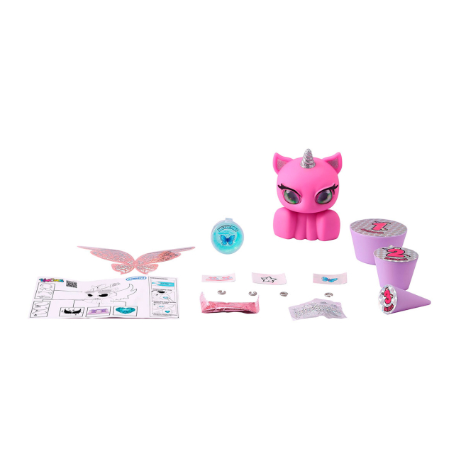 В наборе с каждым единорогом идет свой уникальный слайм, который можно смешивать с блестками. Также в набор входят наклейки, которые можно нанести на героя.
