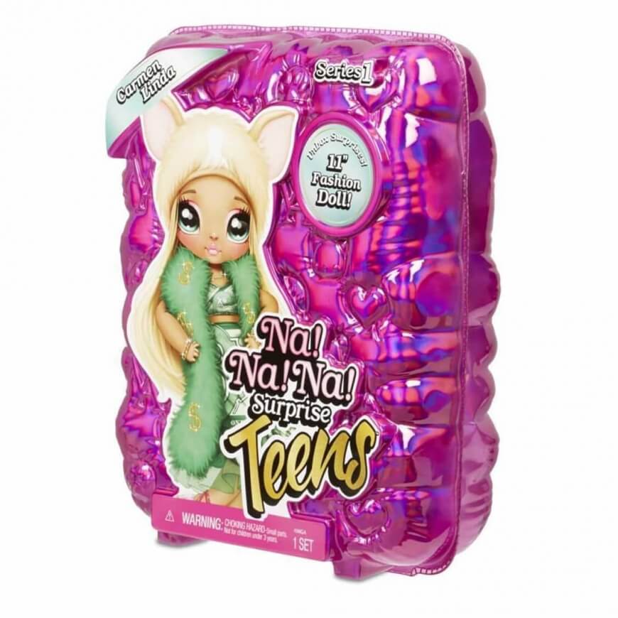 Встречайте новую серию игровых наборов Na! Na! Na! Surprise! "Teens". Эти куклы для девочек относятся к fashion dolls. Они стали выше и подвижнее! С каждой куклой в наборе идут модные аксессуары, которые нужно будет распаковать при помощи пакетика с конфетти. Эта особенность позволяет превратить простое открытие упаковки в настоящий праздник! Еще одна особенность, которая сделает игру с этими куклами еще интереснее – съемные головные уборы. Теперь их можно примерить и другим Teens! Рекомендовано для детей в возрасте от 3 лет.