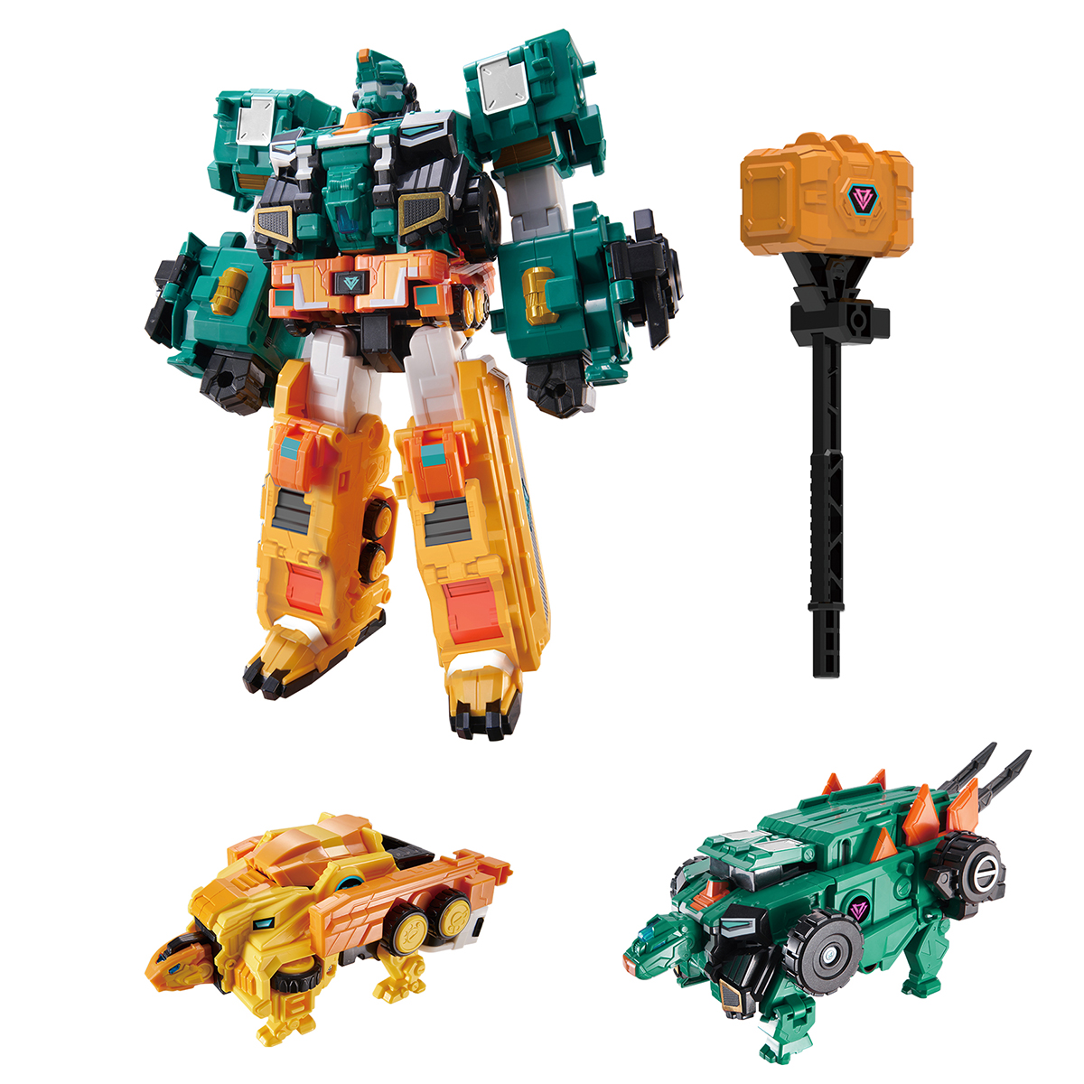 1 робот, который трансформируется в 2 машины и 2 динозавра
