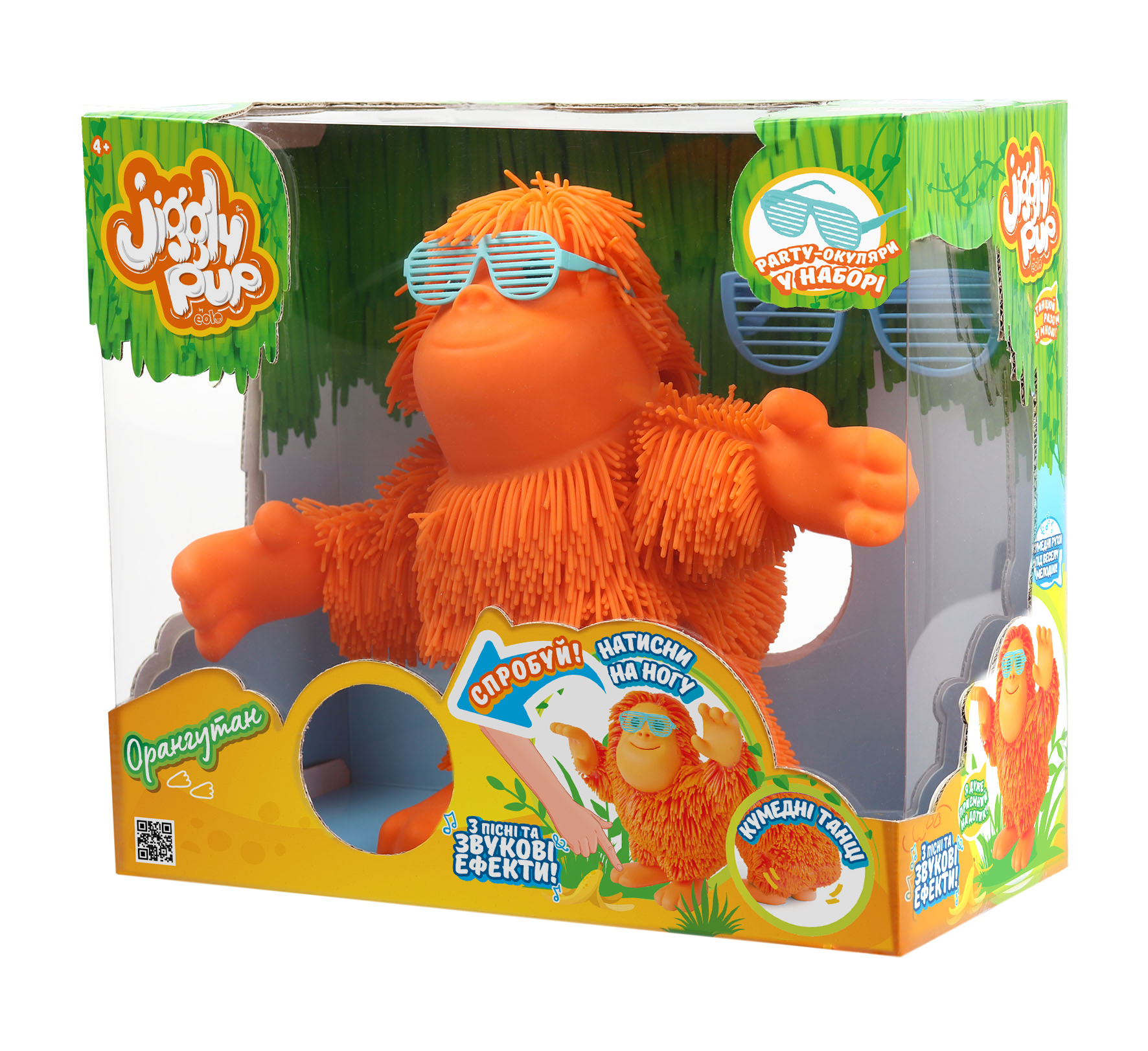 Интерактивная игрушка Jiggly Pup Орангутан танцовщик, бесспорно, станет лучшим другом вашего ребенка! Встречайте веселого орангутана Тан-Тана. Он солнечно-оранжевый, в стильных очках, отличный танцовщик и настоящий король вечеринок! Просто нажимайте на ногу - и повторяйте зажигательные движения!