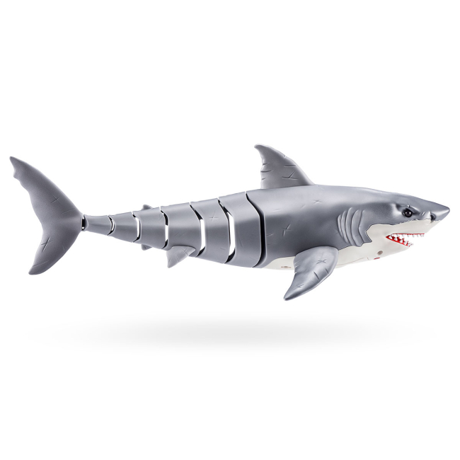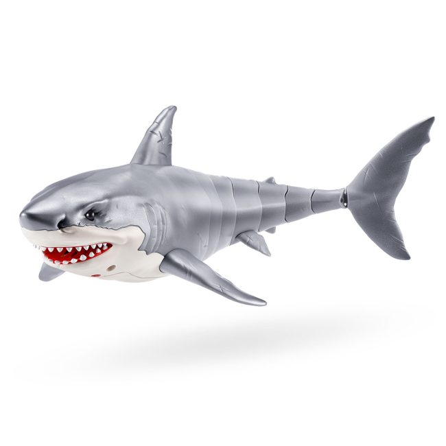 Интерактивная игрушка Robo Alive Большая белая акула имеет своенравный характер: чтобы увидеть, на что она способна, заполни водой большую ванну или бассейн.