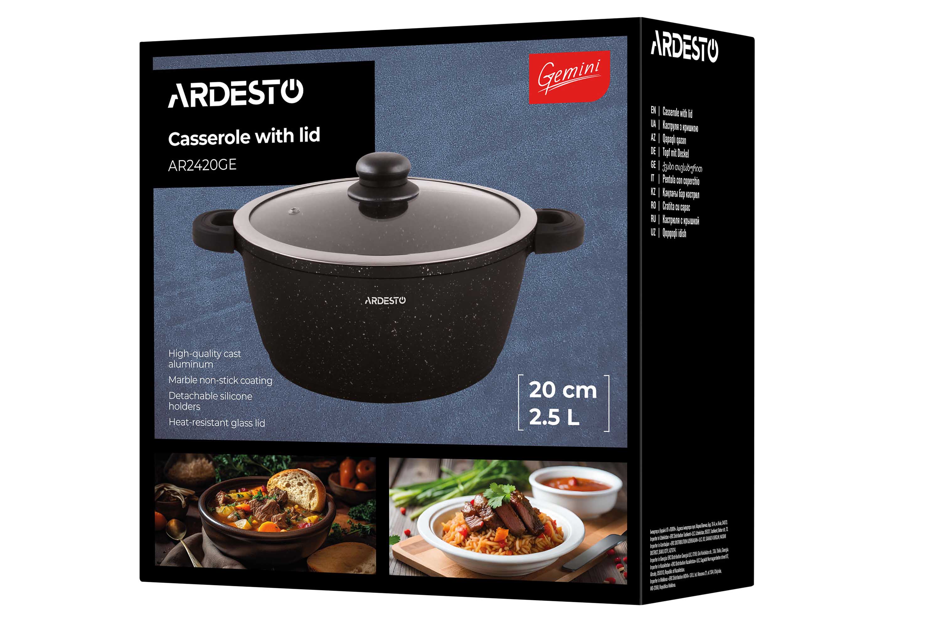Кастрюля ARDESTO Gemini Anzio изготовлена из литого алюминия. Ее объем составляет 2,5 л, а диаметр – 20 см. Стенки толщиной 1,7 мм, тогда как толщина дна составляет 4,3 мм – залог равномерного нагревания. Благодаря противопригарному мраморному покрытию процесс приготовления будет гораздо проще.