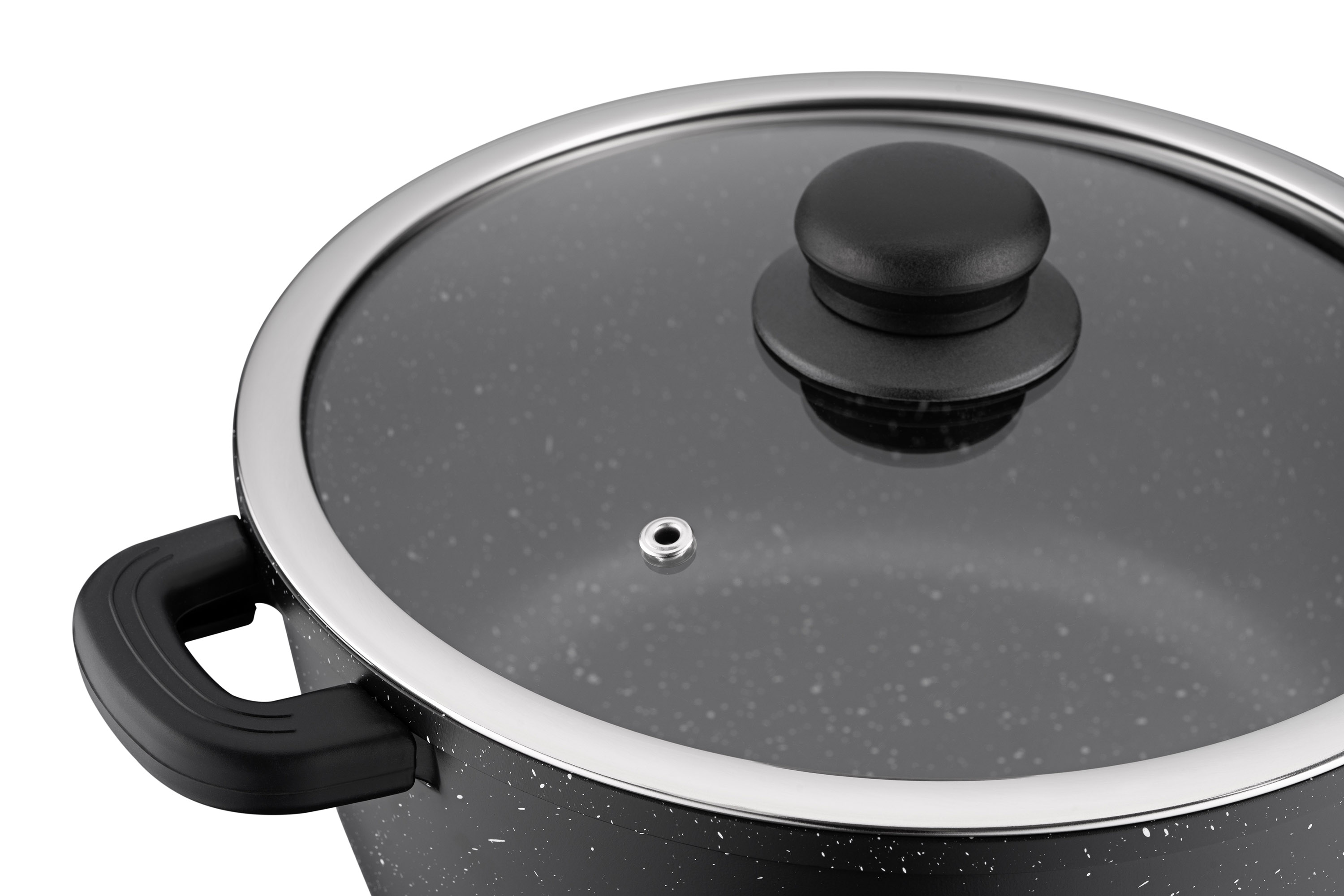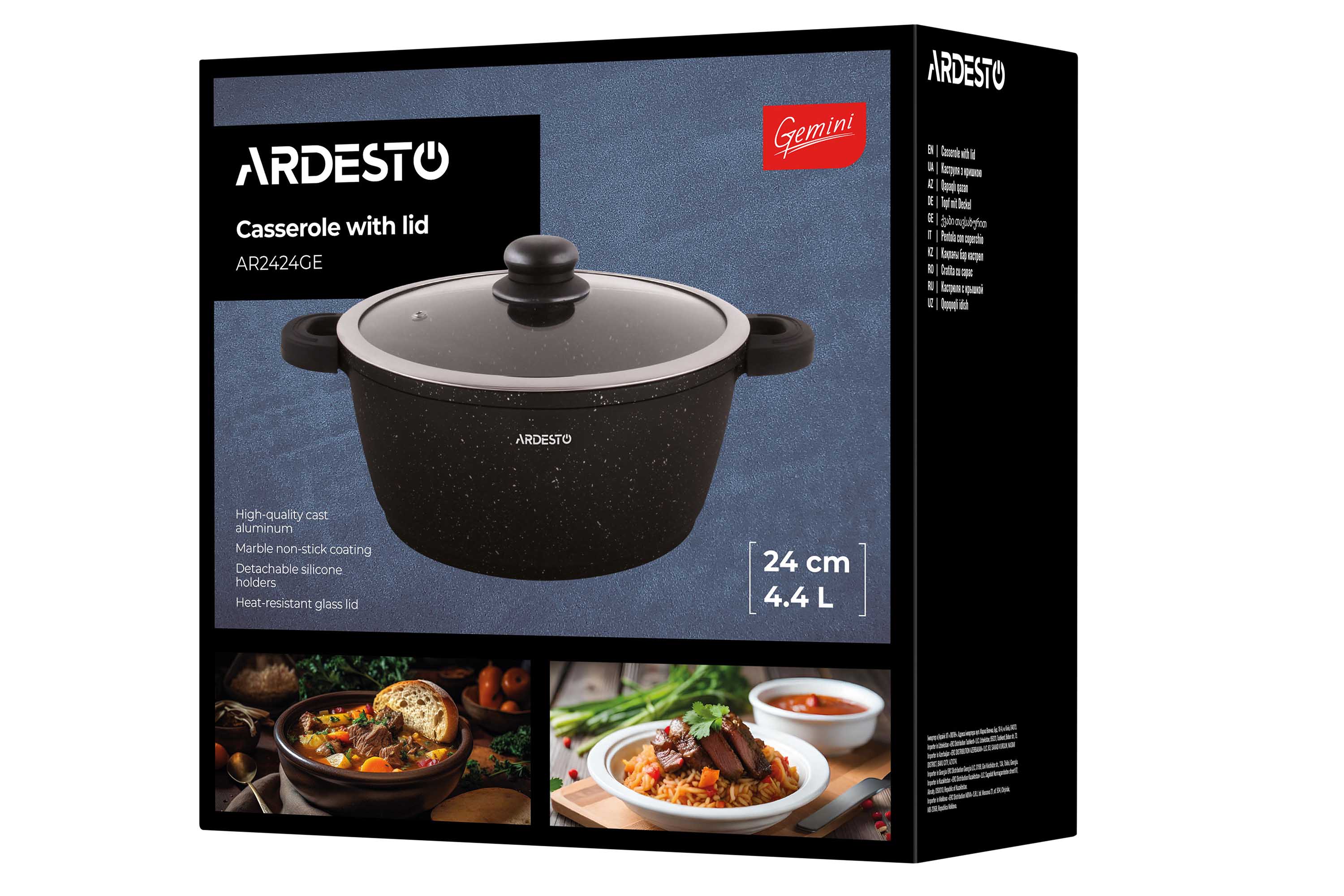 Кастрюля ARDESTO Gemini Anzio изготовлена из литого алюминия. Ее объем составляет 4,4 л, а диаметр – 24 см. Стенки толщиной 1,7 мм, тогда как толщина дна составляет 4,2 мм – залог равномерного нагревания. Благодаря противопригарному мраморному покрытию процесс приготовления будет гораздо проще.