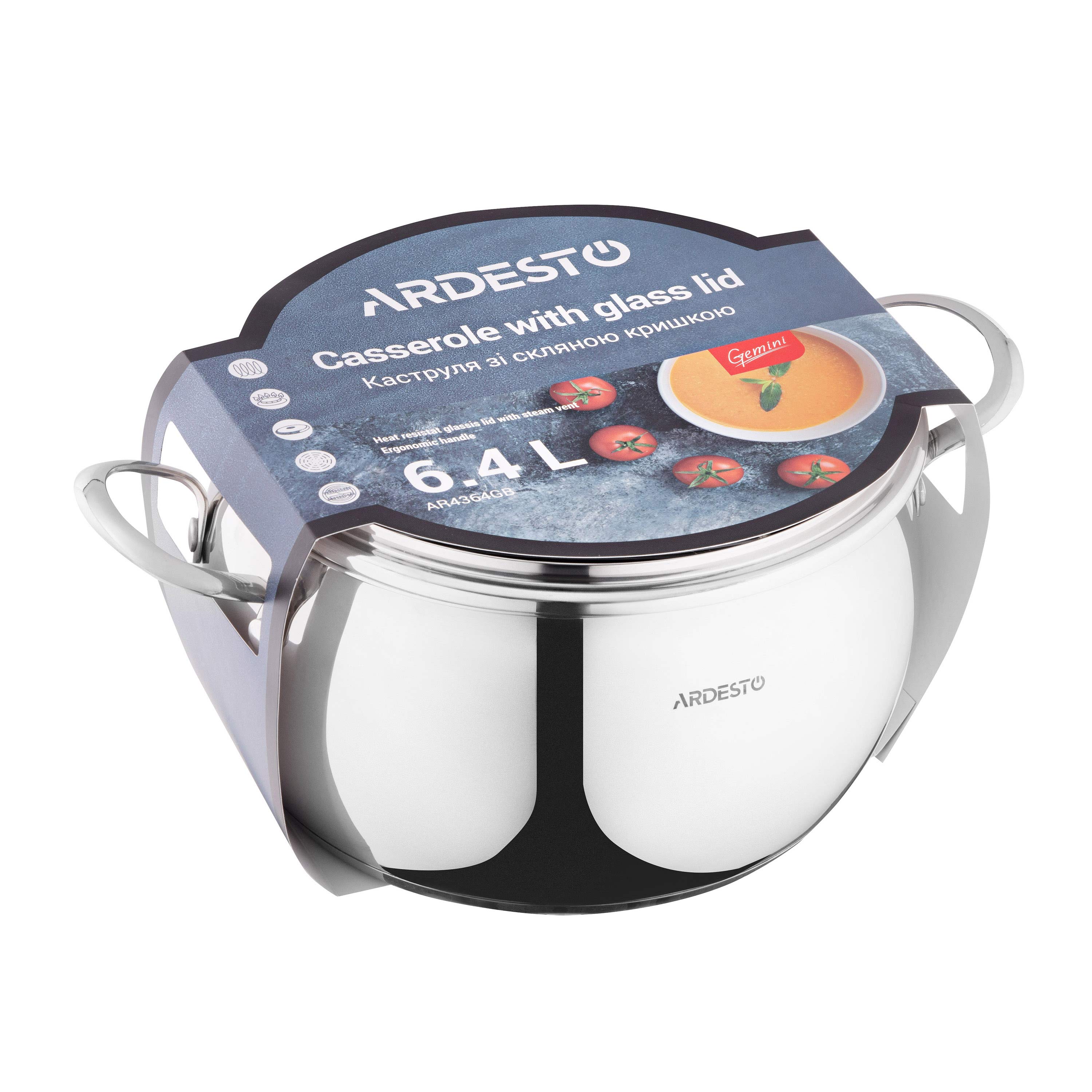 Кастрюля ARDESTO Gemini Liguria классической формы изготовлена из нержавеющей стали — гигиеничного и долговечного материала. Благодаря объему 6,4 л подойдет для приготовления блюд в больших семьях. Дно толщиной 3 мм является залогом того, что блюдо не пригорит и не пристанет. Посуду можно использовать для приготовления на газовой, электрической, стеклокерамической, галогенной или индукционной плите. Удобства использования добавляет мерная шкала на стенках кастрюли и стеклянная крышка с отверстием для пара. Изделие можно мыть в посудомоечной машине.