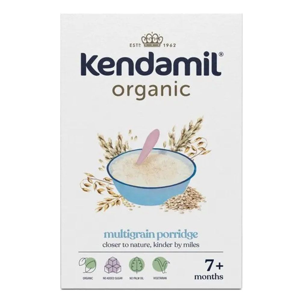 Безмолочная органическая мультизлаковая каша Kendamil – сбалансированное питание для ребенка с 7 месяцев на основе злаков, необходимых витаминов и минералов. Подходит для вегетарианского питания.