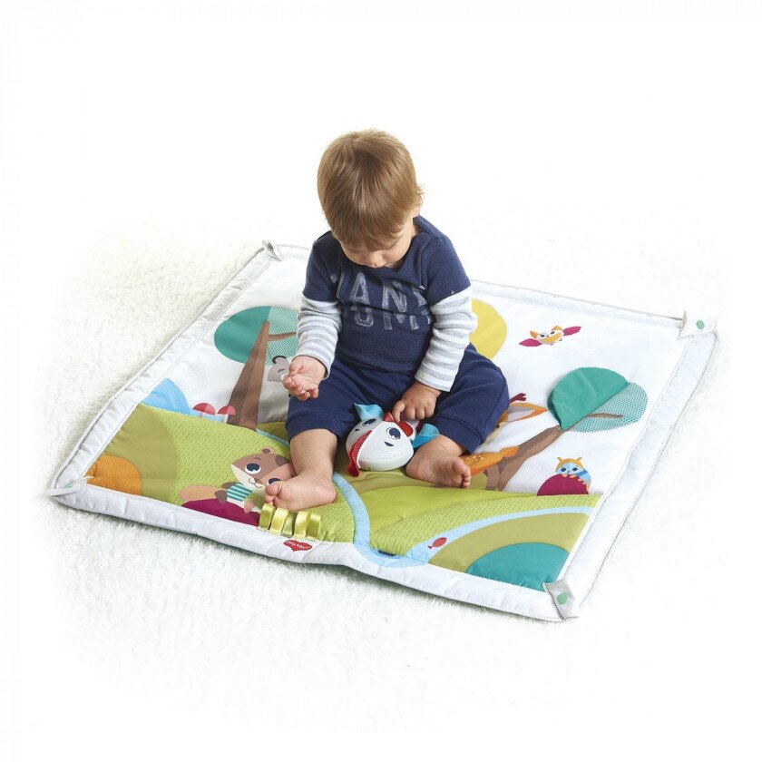 Как занять малыша? Ответ кроется в развивающимся коврике, который надолго приклеит к себе ребенка и подарит родителям немного времени на себя любимых. Размер коврика составляет 80 х 60 см. На нем также имеются встроенные фактурные элементы для развития.