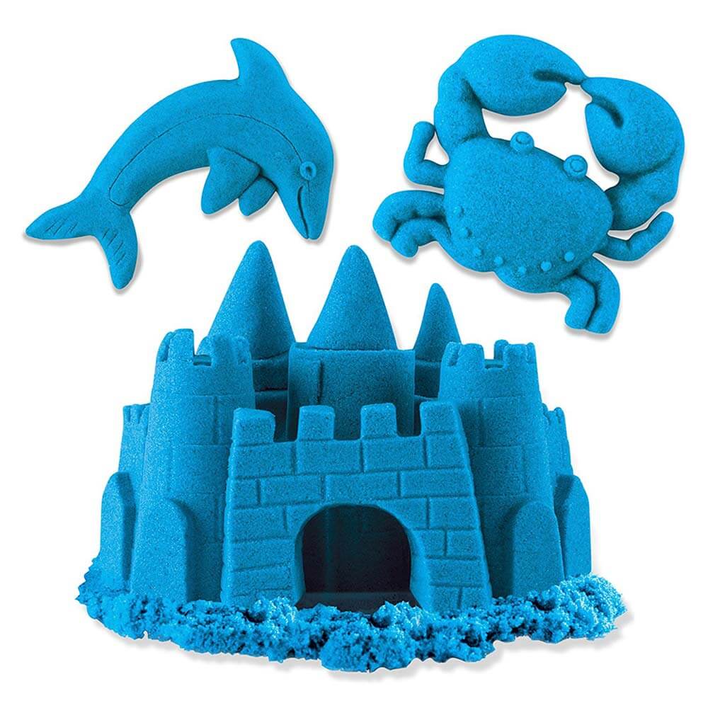 Фигуры легко принимают желаемую форму и имеют яркий синий цвет. Песок не растворяется в воде и не оставляет следов на руках или поверхностях.