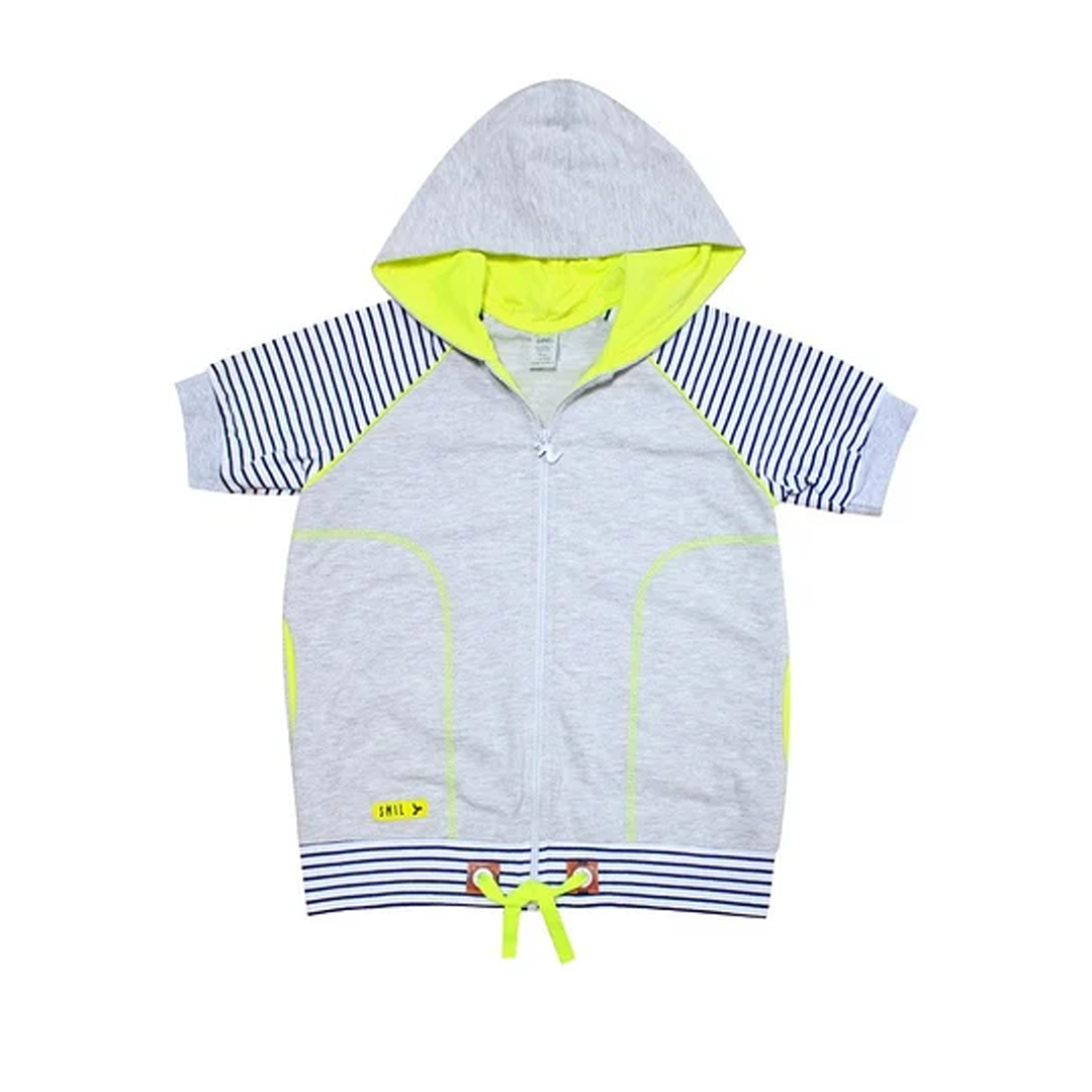 Трикотажная летняя кофта с застежкой на молнии и капюшоном. По бокам кармашки. Серый цвет.