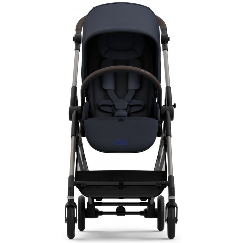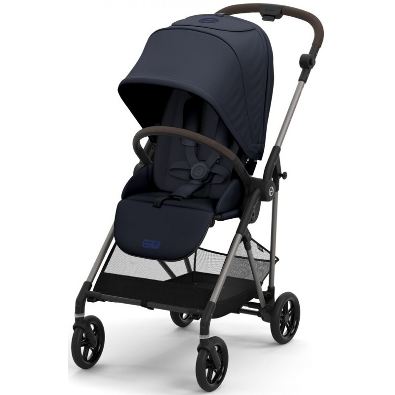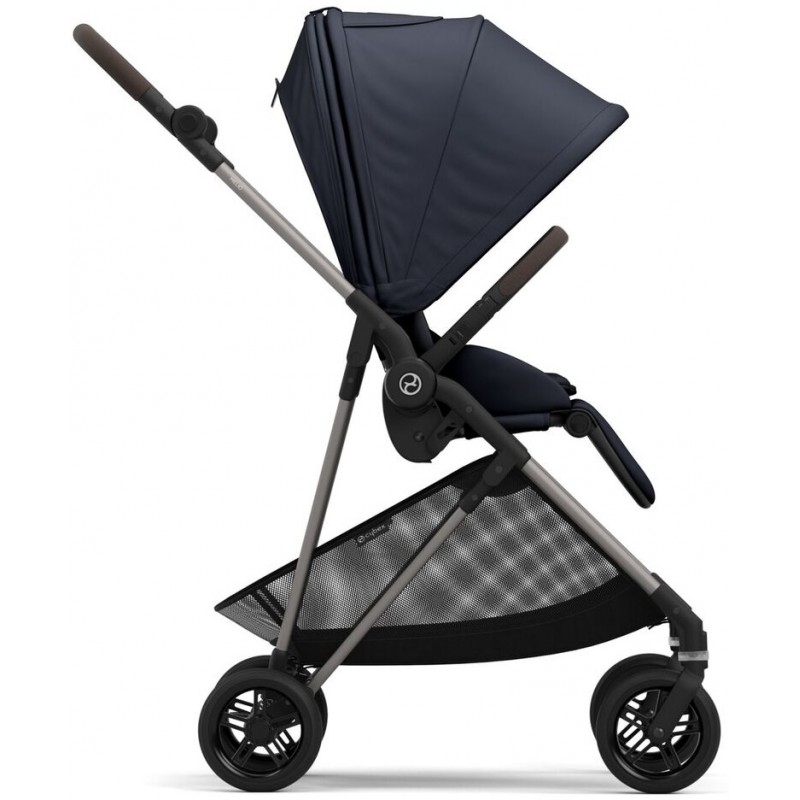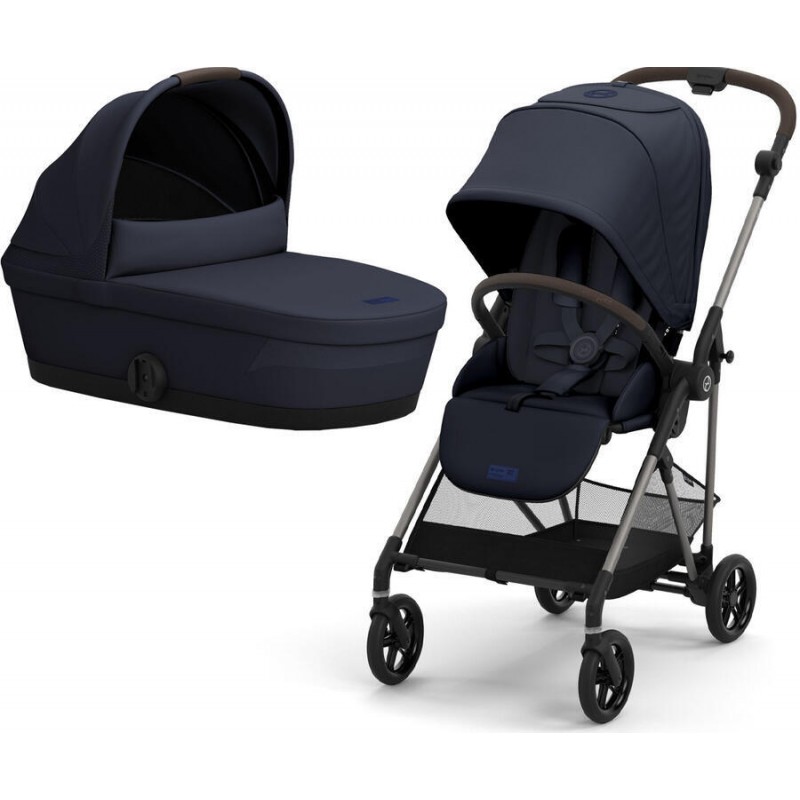 Коляска Cybex Melio 2 в 1 комплектуется: шасси с колесами, люлька, прогулочный блок с бампером, нижняя корзина для покупок.