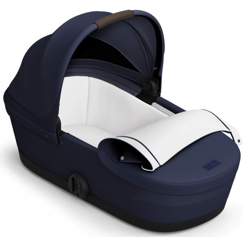 Люлька Cybex Melio имеет ручку для переноски, а также встроенную в капюшон москитную сетку для проветривания. Внутри люльки мягкий, довольно высокий матрасик, обеспечивающий правильное положение лежа ребенка. Внутренняя обивка коляски, съемная,и ее можно стирать по мере необходимости. Капюшон имеет дополнительный солнцезащитный козырек с уровнем защиты UPF50+.