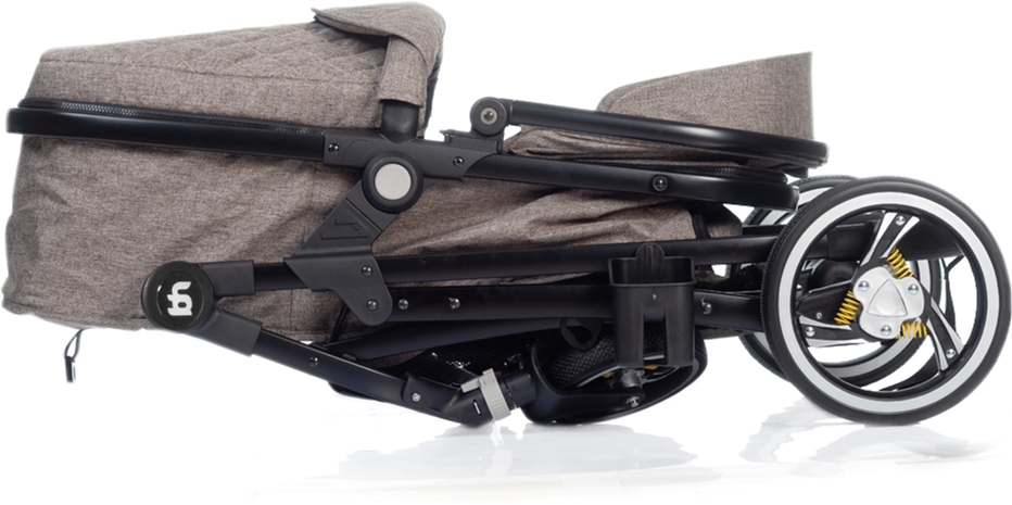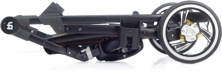 Шасси и колеса: Сложение коляски одной рукой с блоком и без. Колеса со встроенными амортизаторами. Фиксация передних поворотных колес. Классическая амортизационная пружина в креплениях задних колес. Вместительная багажная корзина.