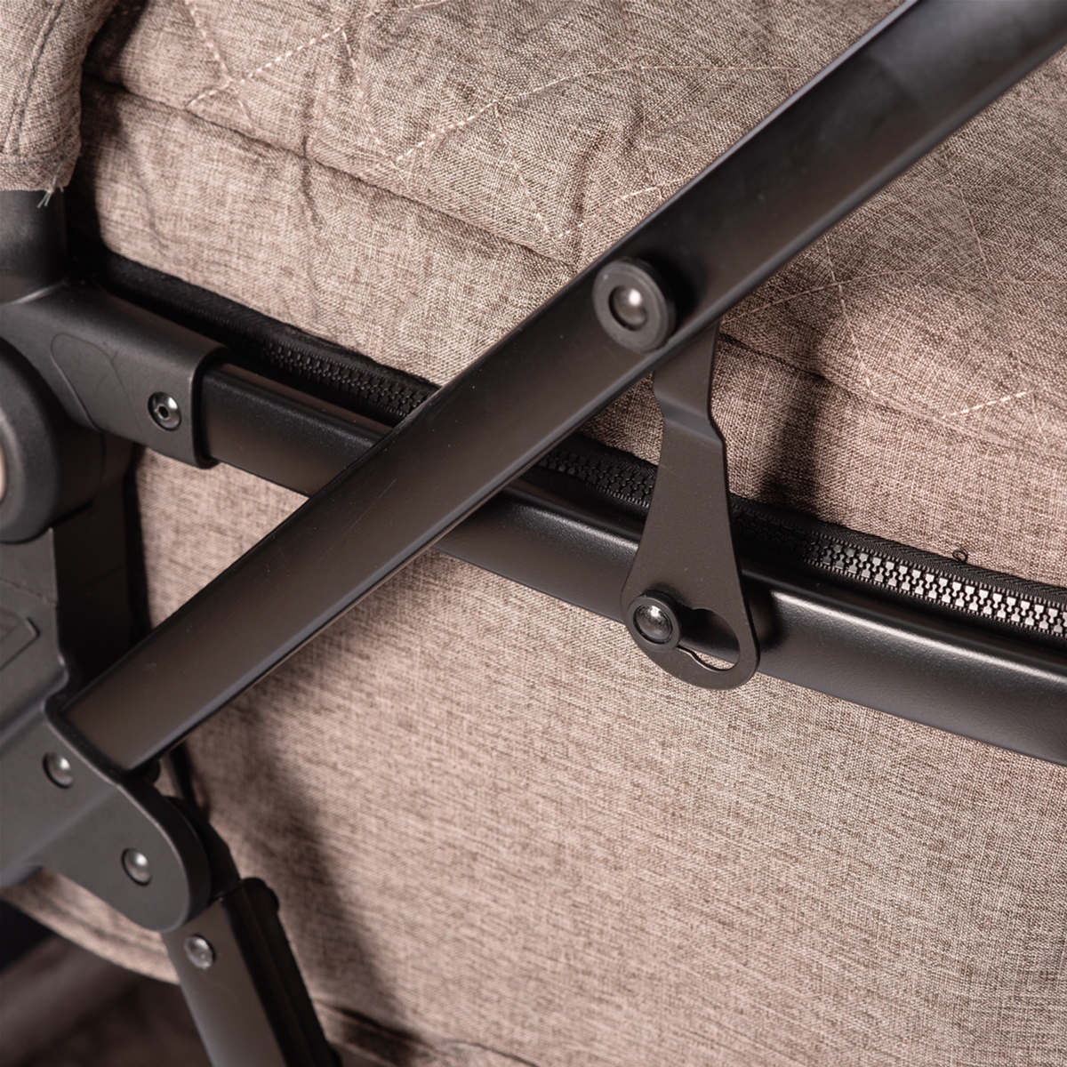 Для комфорта ребенка коляска снабжена мягким матрасиком, большим капюшоном и накидкой для прохладного времени года. Большое внимание в данной модели уделено ходовым качествам модели. Коляска оснащена не большими передними и большими задними, аккуратными колесами со встроенной амортизацией, так же на задних колесах расположена классическая пружинная амортизация для поглощения неровностей дороги и легкого преодоления препятствий.