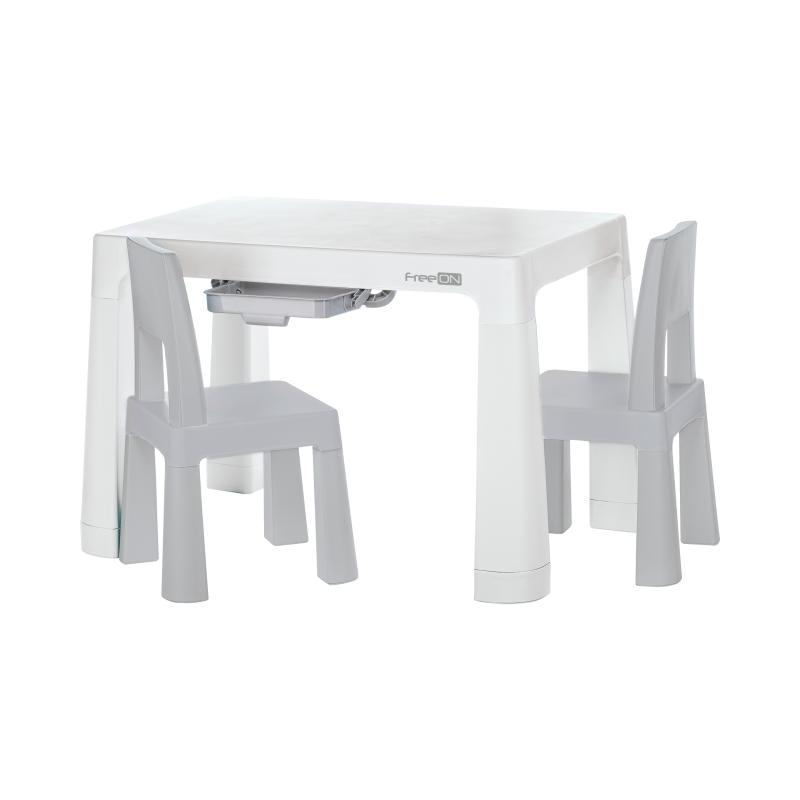 С его современным видом детский игровой стол FreeON NEO с двумя стульями прекрасно вписывается в гостиную, столовую, детскую комнату или игровые зоны. Дети могут рисовать, творить, красить, есть, читать и играть на нем.Стол имеет два дополнительных выдвижных ящика, которые могут обогатить игру детей, а также позволяют сохранять разнообразные необходимости.