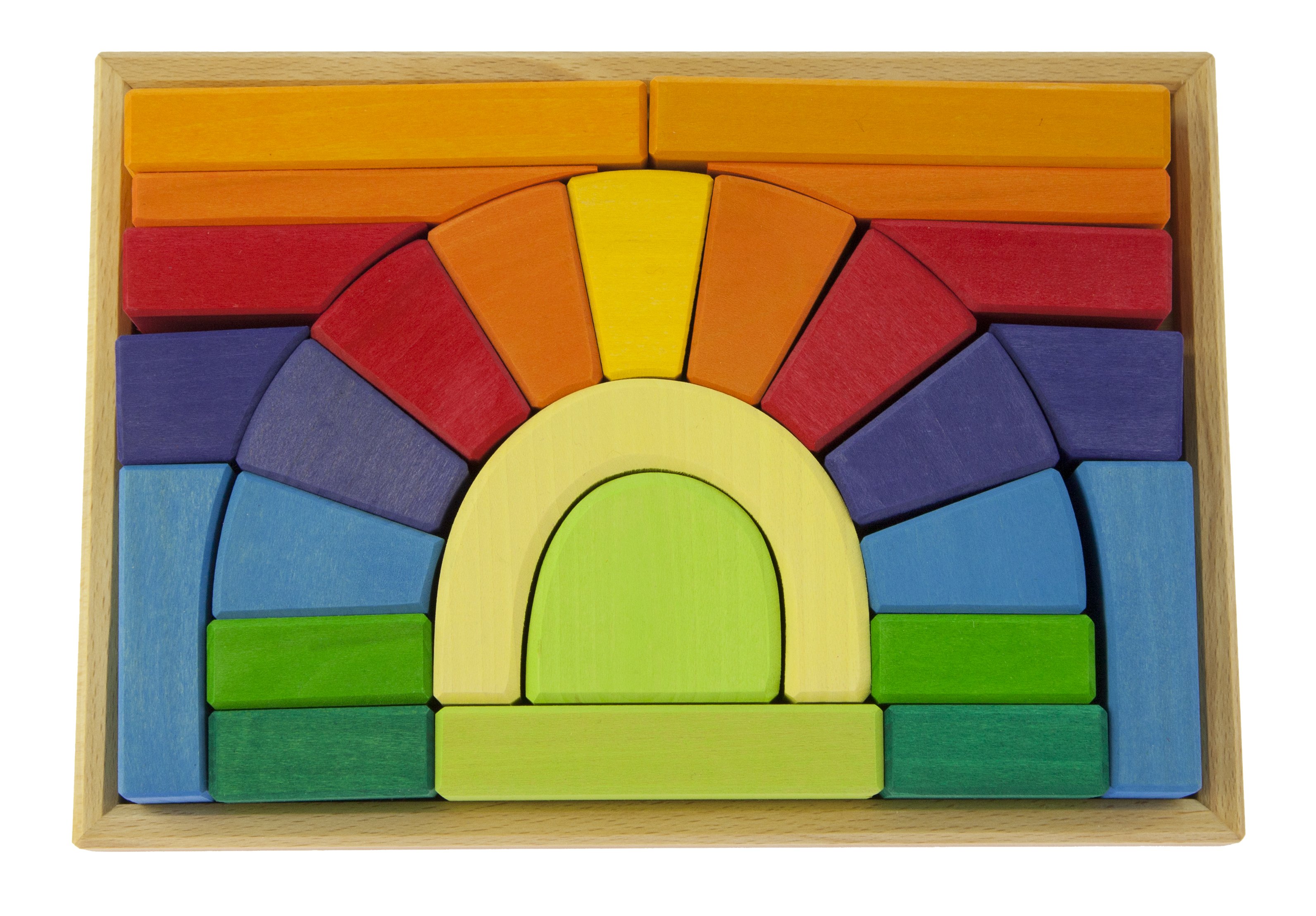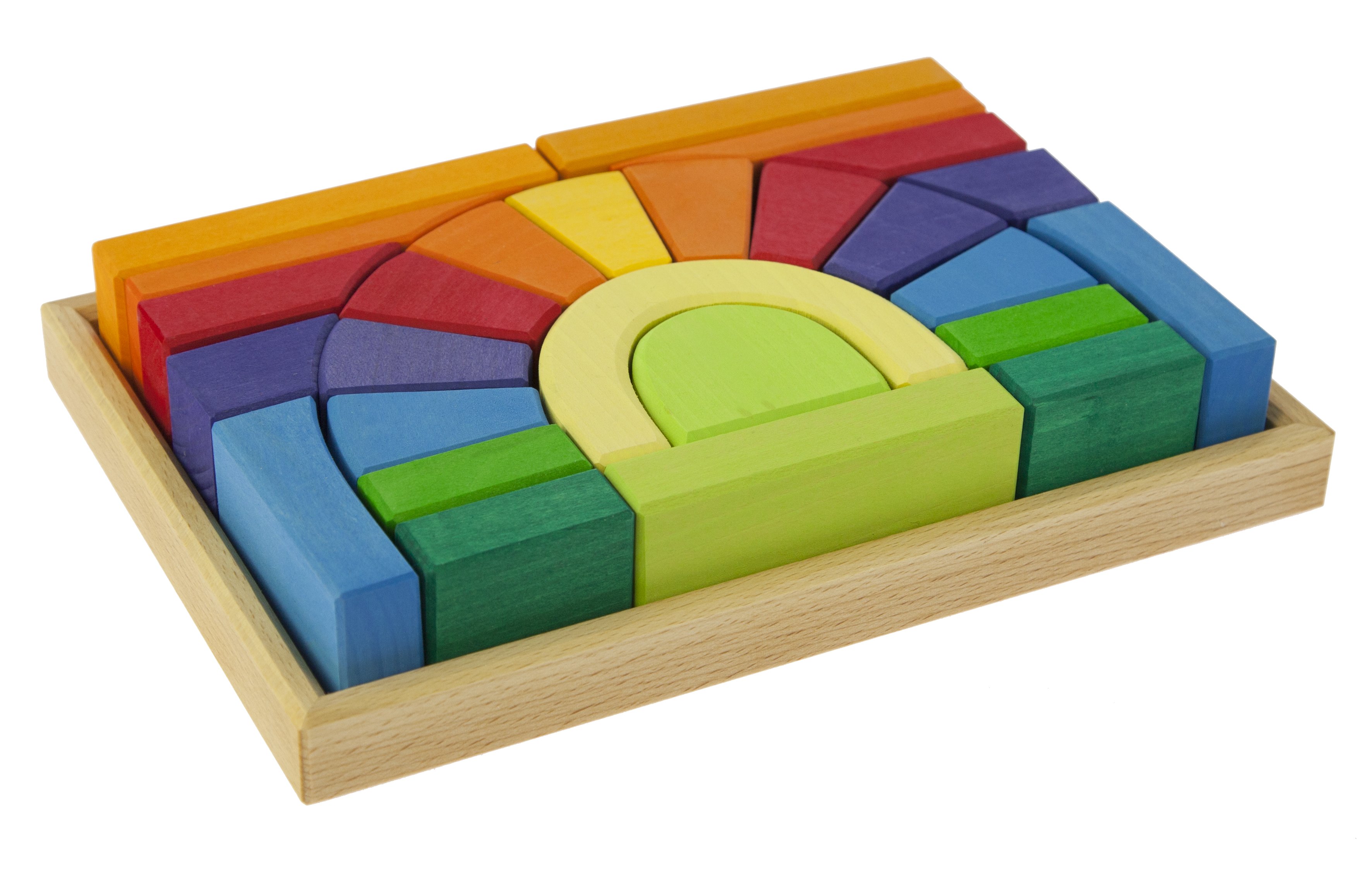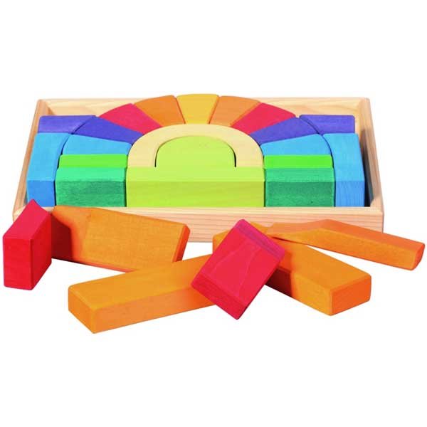 Разноцветный деревянный конструктор «Мост» сияет радужными красками и играет большую развивающую роль для самых маленьких.