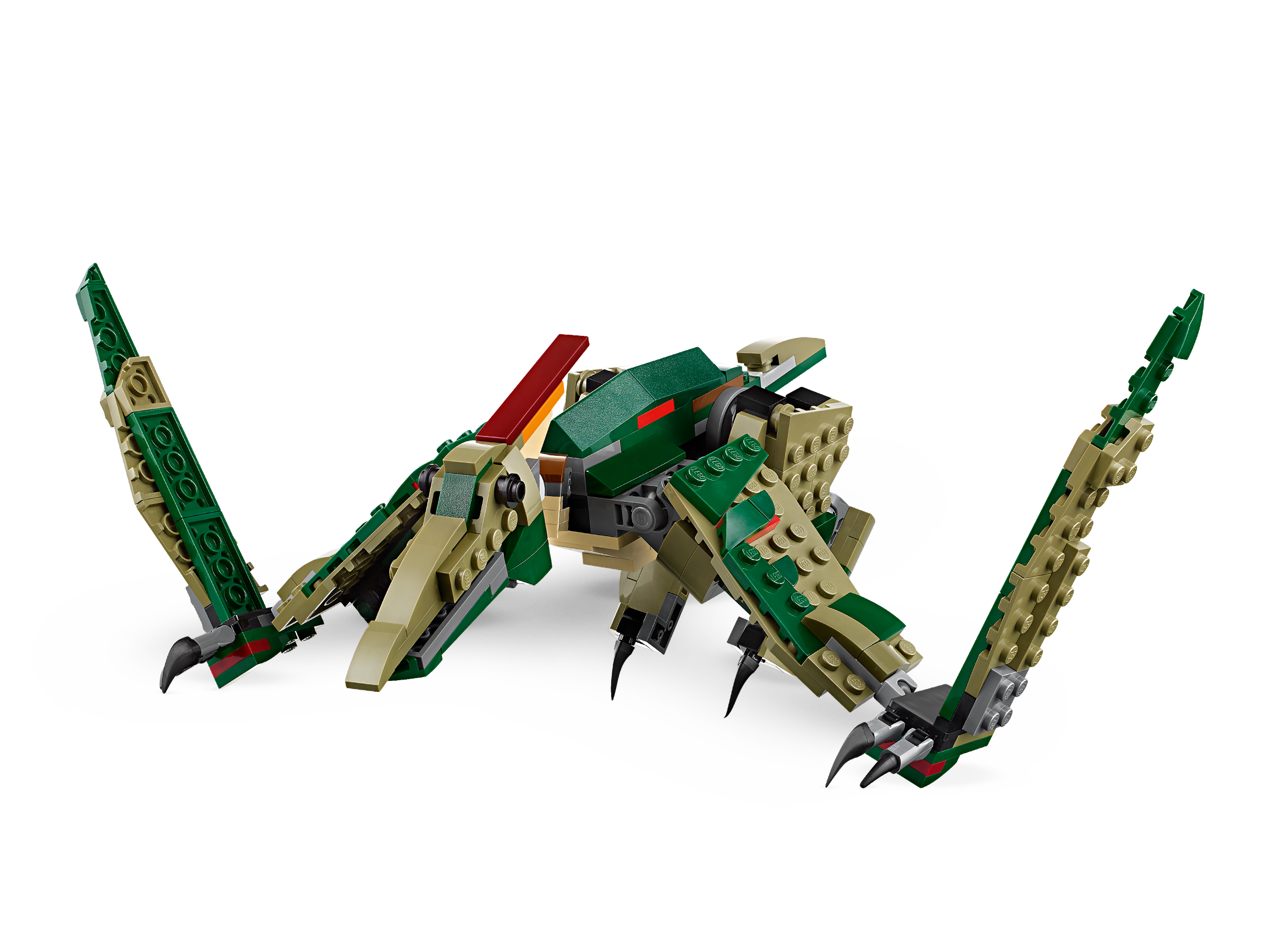 птеродактиль. Последняя сборка является самой простой, если сравнивать с предыдущими, однако это единственный представитель, способный летать. У этой модели небольшое тело, и основные усилия по сборке приходятся на ноги с крыльями. В конечном итоге, именно крылья являются подвижными - могут сгибаться в половине, поскольку динозавр использовал для опоры при ходьбе. Также могут открываться и закрываться челюсти.